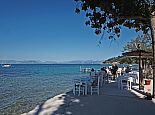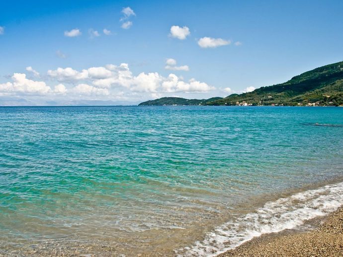 From Messonghi, the road runs along the south east coast to the villages of Boukari and Mpoukaris and on to Petriti. This corner of Corfu is an idyllic unspoilt area where the villages are small, the beaches uncrowded and the olive clad countryside is the perfect place for gentle walks. With its small fishing harbour, the sleepy hamlet of Boukari has changed little over the years, and has a renowned taverna. The main beach is small and quiet, perfect for anyone looking for a relaxing day. A mix of pebble and shingle surrounded by olive groves, providing shade, sunbeds are available to hire and the beach is considered safe for children. There is also a little harbour for fishing boats.