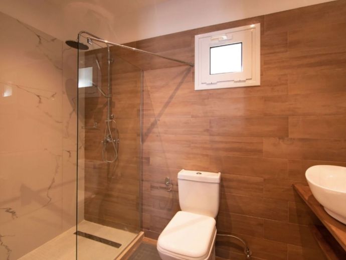 Ground Floor: Entrance from pool terrace into open plan living/dining room (TV, WiFi, A/C). Kitchen (oven, microwave, dishwasher) with sliding doors to pool terrace. Cloakroom (washing machine). Double bedroom (TV, A/C) with en suite shower room and sliding doors to pool terrace.