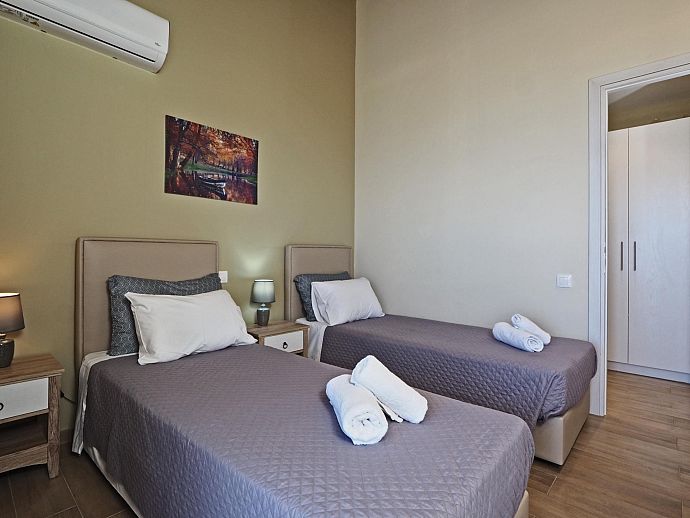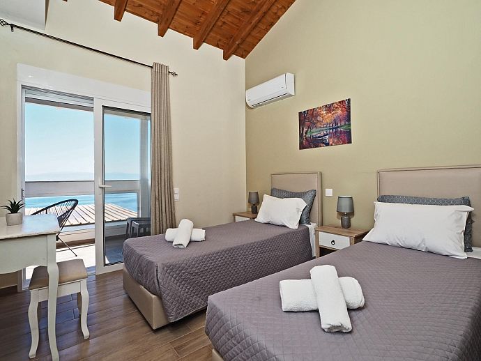 Bedroom: 2 single beds, A/C, TV, sliding doors to balcony