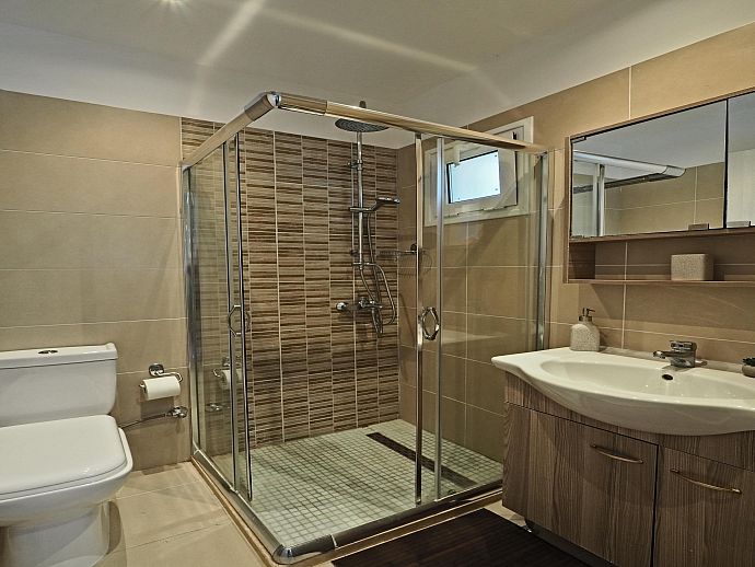 First Floor: Double bedroom (TV, A/C) with sliding doors to balcony. Twin bedroom (TV, A/C) with sliding doors to balcony. Shower room.