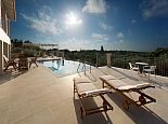 As you enter into the open plan living, dining and kitchen area on the upper level a markedly relaxed tone is immediately apparent. Comfortable soft furnishings enhanced by a fresh décor of neutral and semi-neutral tones set a trend that continues throughout the house. Both from here and the adjacent double bedroom, doors open onto a wide, shaded balcony from where those views of the infinity-edged pool, countryside and coastline beyond are, nothing less than hugely impressive.