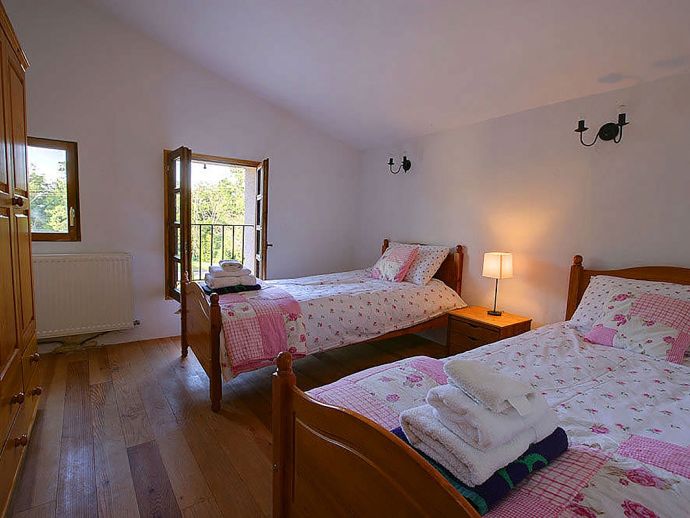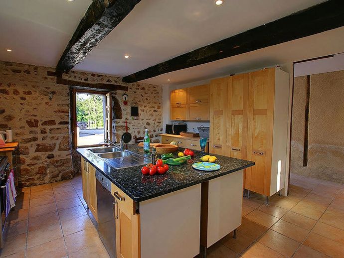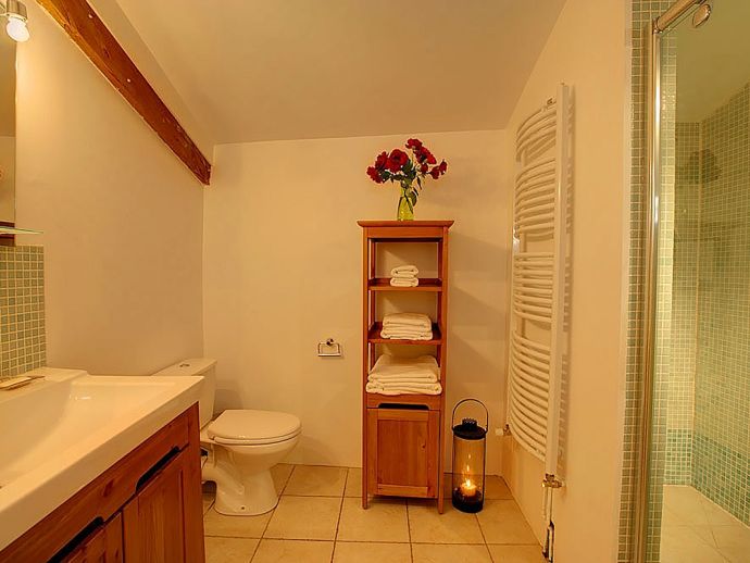 Upstairs, the bedrooms and bathrooms have been thoughtfully laid out to give large parties maximum privacy. The bedrooms are each individually furnished and decorated and range from a lovely twin bedroom with white painted furniture to the principal double bedroom with original features such as exposed stone walls and a high vaulted ceiling. The clean and simple décor is continued in the modern bathrooms.