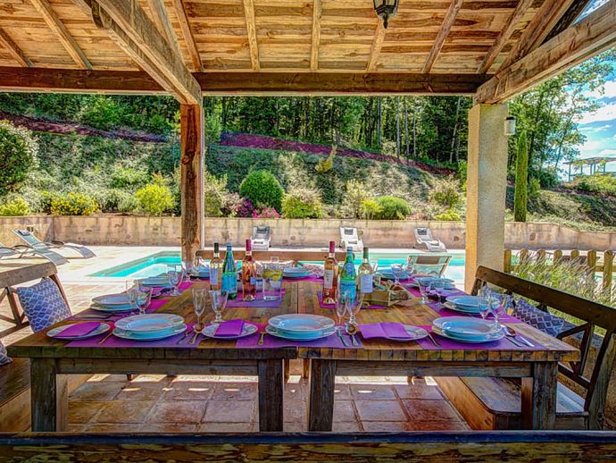 Careful thought has also been given to the grounds of La Brisée to ensure that there is somewhere for the adults to relax and the children to play. The pool area, on a slightly raised level to one side of the house, is surrounded by a large terrace and with the adjoining covered dining area is a perfect place to sunbathe.