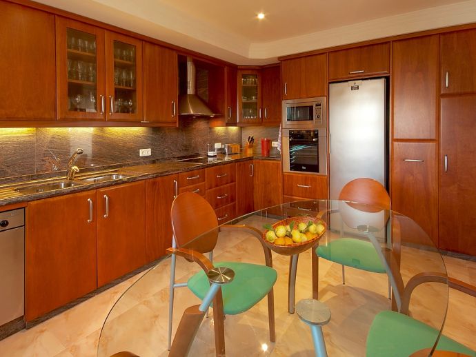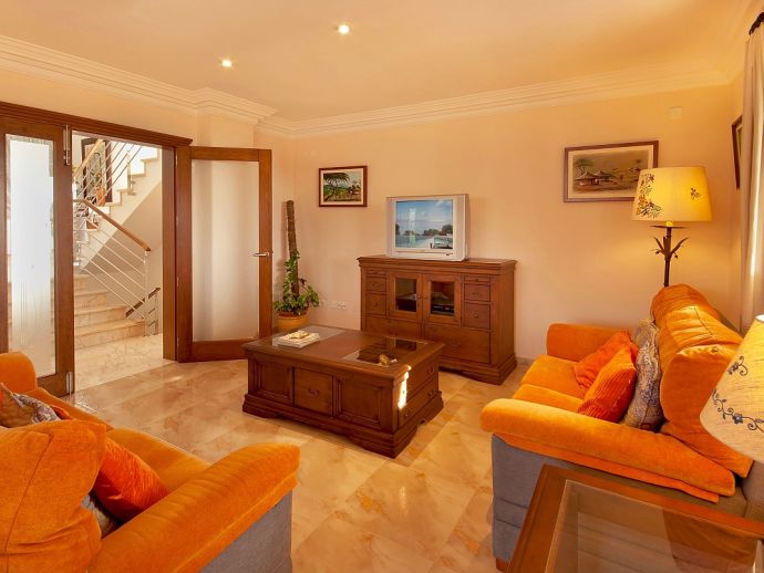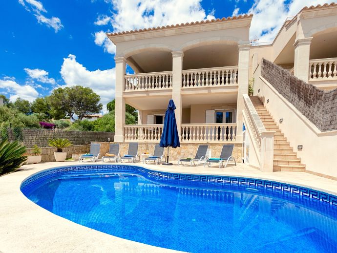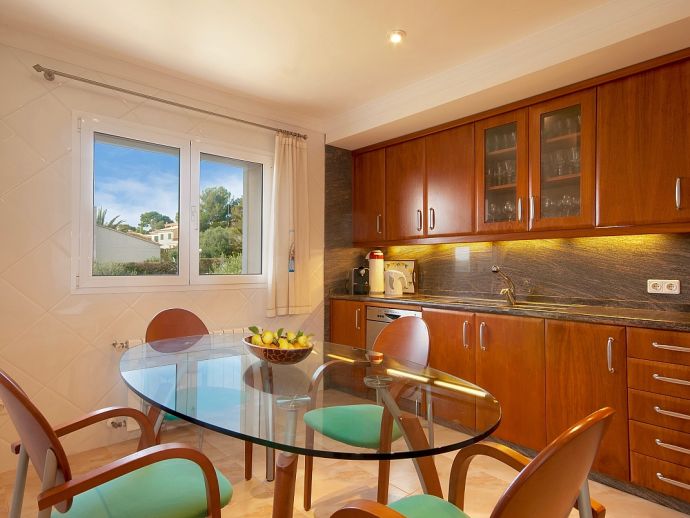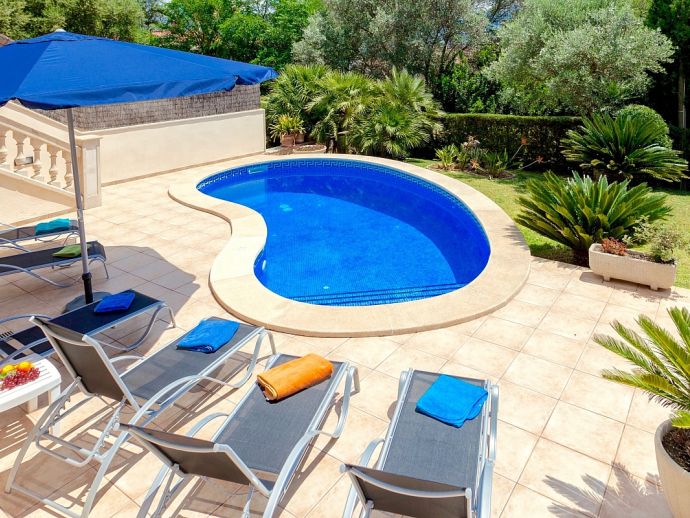 Villa Alcanada Beach is a semi-detached holiday home with a private pool located next to the beach and Club de Golf Alcanada in the bay of Aucanada and just a few minutes drive from the ancient towns of Port d'Acudia and Alcudia. The house is set over three levels with a large roof terrace providing fabulous views over the sea and to the island Illa de Alcanada with its famous lighthouse. The entrance level comprises a living room and dining area with access to the terrace/pool, a fully equipped kitchen and a handy guest bathroom (w/c). The 3 air-conditioned bedrooms are on the lower level, a master with an en-suite bathroom and two further bedrooms that share a family bathroom. Here will also find a garage and a laundry room with an extra freezer. The private kidney-shaped swimming pool is surrounded by a lovely garden with outdoor furniture provided for relaxation and al fresco dining. This prestigious villa offers many opportunities, a calm yet central location, a golf course and a beach just some steps away and supermarkets, bars and restaurants are also nearby. Ideal for families and couples!