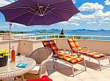 Plot 455 m² - Garage and enclosed garden with a lawn, terraces and a large sunroof with sea view.