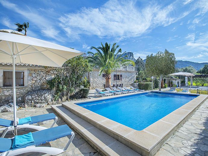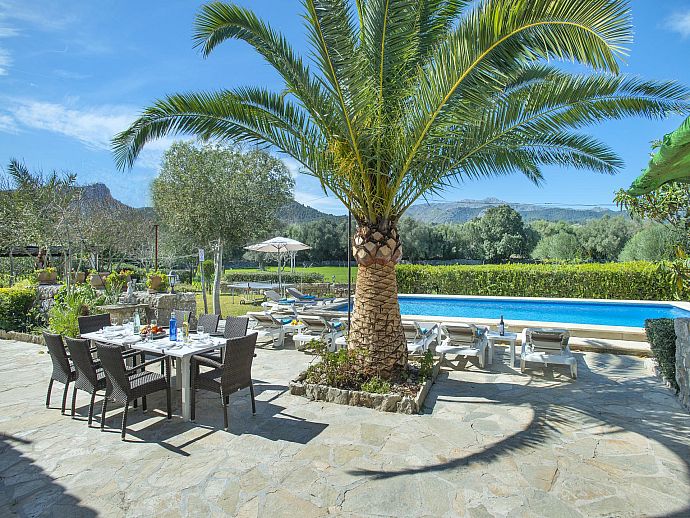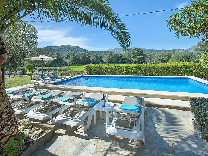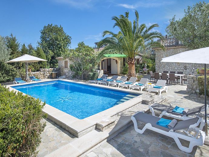 Nestled in the heart of the verdant Pollença topography, surrounded by far reaching mountain vistas, Can Reus provides a variety of shady niches, grassy nooks and leafy terraces amongst its lovingly tended garden, as cobbled stone paths meander from the enchanting pool area to this comfortable, endearing home.