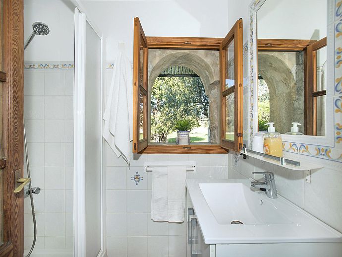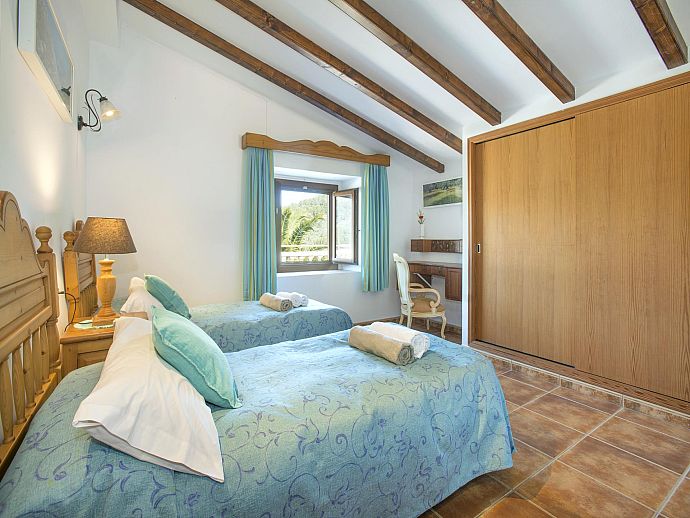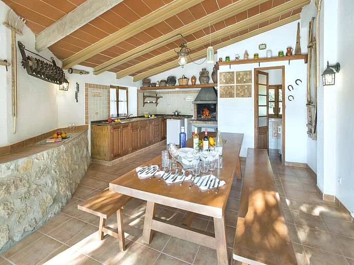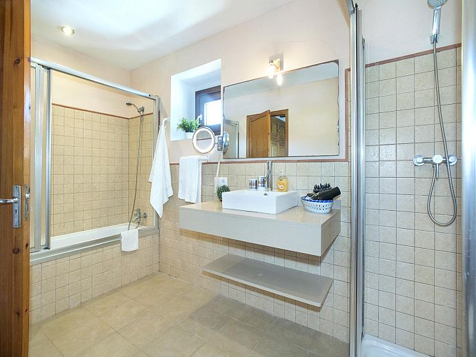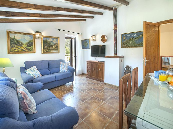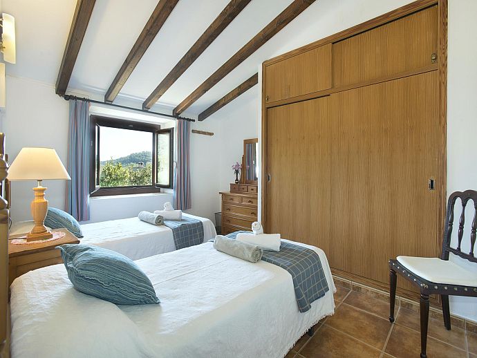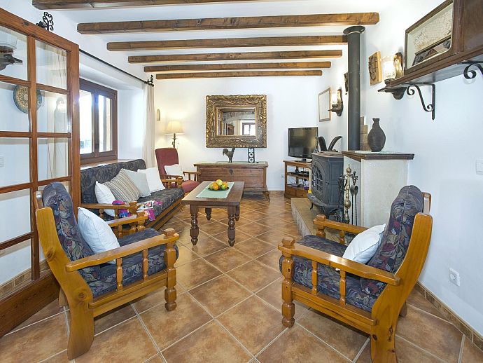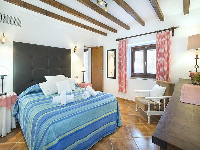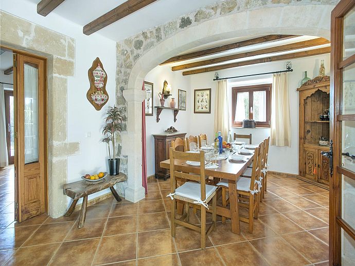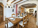 Inside, furnishings depict traditional Pollença charm distributed over two levels, with characterful touches to compliment more recent additions that facilitate conveniences of day to day living. Two separate living rooms (one on each floor), ensure ample space is to hand for all members of the group to spread out and claim their own favourite recess, either to immerse themselves in the latest novel, catch up on social media antics or simply switch off completely and relax. A small farmhouse kitchen provides all modern day facilities and sits between the interior dining area and a path leading outside to the pretty poolside dining terrace.