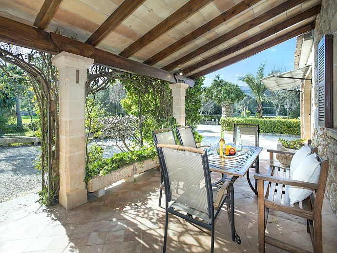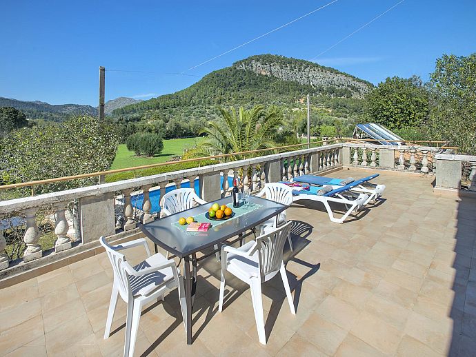 A stone clad front porch, engulfed in a cluster of intertwining vines - complete with rocking chair, instantly becomes firm favourite as a shady retreat, for sipping ice cold lemonade at the height of the midday sun, surpassed only by the grand, pièce de résistance balcony on the first floor, with ornate balustrades, terracotta tiles and infinite views across the panorama, interrupted only by the majestic Puig de Maria.