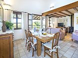 An open-plan layout and bright décor combine to create a light and airy feel, wooden beams flow throughout the home, while furnishings are a stylish but unfussy blend of contemporary and traditional – from the ornate wood burner tucked in the corner, to the chunky wood dining table taking prime position centre stage. Tiled floors provide cool interiors during hot, summer days whilst all bedrooms have air-conditioning for a good night’s slumber.