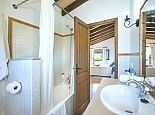 First Floor: Double bedroom (A/C). Two twin bedrooms each with A/C. Bathroom. Bathroom with small bathtub and overhead shower.