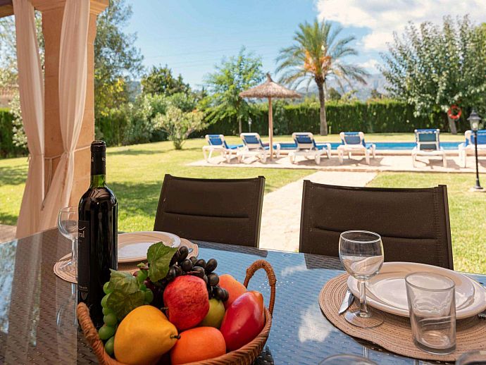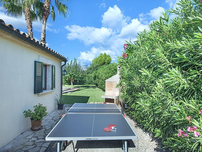 Unquestionably the most captivating part of this home is the beautifully nurtured garden, fringed by hedges and colourful shrubbery and overlooked by a wooden beamed terrace with ample space for al fresco dining, it affords stunning mountain views of the Sierra Tramontana encompassing this rural setting. Grass surrounds the larger-than-norm pool which will surely tempt those looking for respite from the midday heat. To appease those who may find lazy days and chilled out evenings a little tedious, a fun game of mini football or a table tennis tournament after lunch are a couple of distractions on hand.