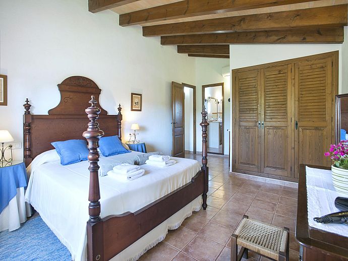With traditional Mallorquin wares furnishing the interior, this lovingly maintained house offers comfortable accommodation for a multigenerational family or assembly of friends. Entrance is through a solid wooden door into an open plan lounge/dining area. A separate kitchen incorporates a breakfast alcove, a small pantry and larger utility room (washing machine). In keeping with the typical local charm of the rural dwellings of the area, attention to detail is the key, two wooden dining tables are particularly of note - so cherished and cared for that they look as good as the day they were crafted. The spacious bedrooms reveal from each window a glorious green backdrop of hills and rolling Mallorquin countryside - even waking up each morning will be something to write home about, certainly a great location to relish escape from the mundane day to day routine.