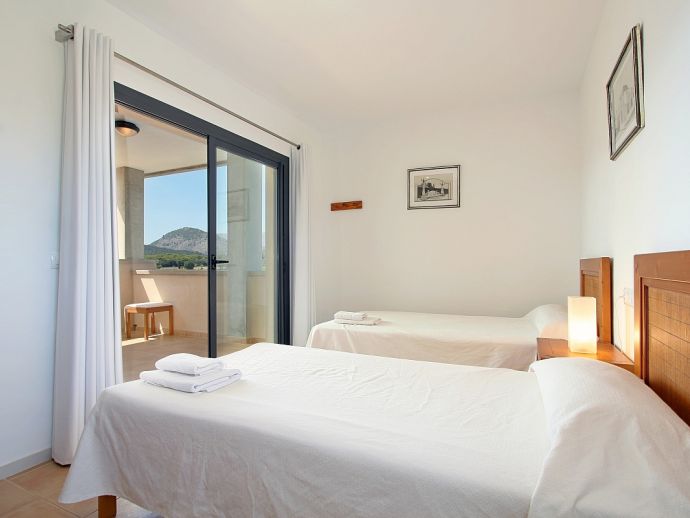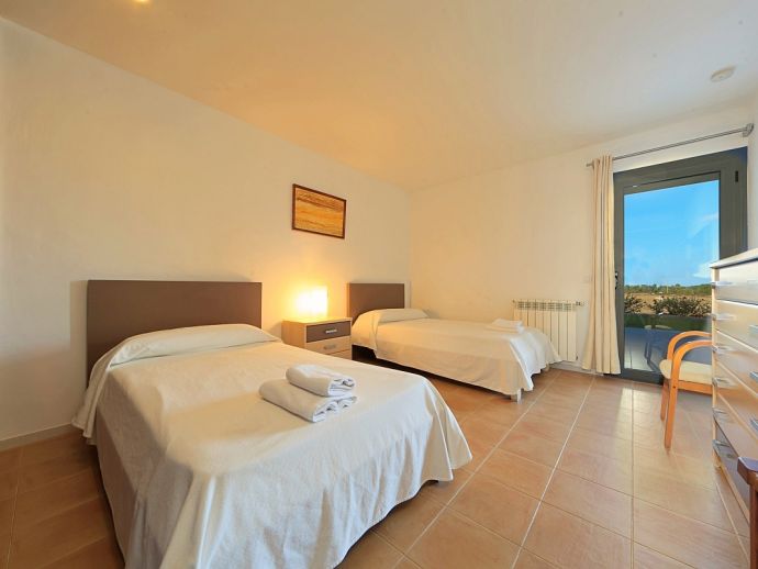 Bedroom: 2 single beds, A/C, patio doors to terrace
