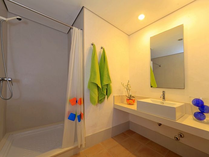 Bedroom: 2 single beds, A/C, en-suite shower room, patio doors to terrace