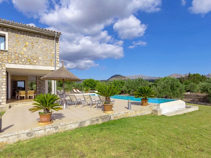 Villa Font is situated in the countryside offering panoramic views to the mountains and to the Bay of Pollenca. This idyllic location provides easy access to Old Town Pollenca and Pollenca Golf course (5/10 mins) as well as the excellent beach resorts of Port de Pollenca, Cala San Vicente, Port d'Alcudia and Playa de Murro (15/20 mins). Pollenca is an ancient town with attractive narrow streets and an impressive main square, a place abundant with art galleries, first-class restaurants, tapas bars and cafes plus several historical places of interest. The town of Alcudia is a real treasure on the island, hiding behind medieval walls and the ancient Roman ruins, just a few kilometres from Alcudia on the coast, lies its fraternal city, Puerto de Alcudia. The long sandy beaches with shallow clear waters at Port de Pollenca, Platja d'Alcudia and Platja de Muro are great for families with plenty of activities and water sports on offer, they are lined with a splendid array of cafes, restaurants and beach bars to suit all tastes. Cala San Vicente is a beautiful secluded resort village with a splendid beach and three small hidden bays enclosed by the imposing backdrop of the Tramuntana Mountains.