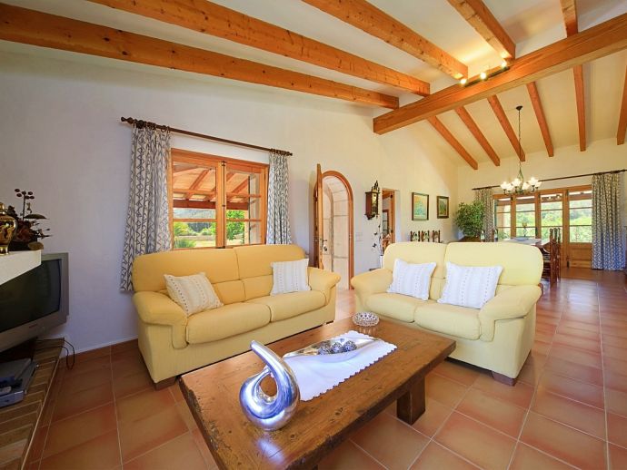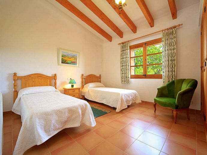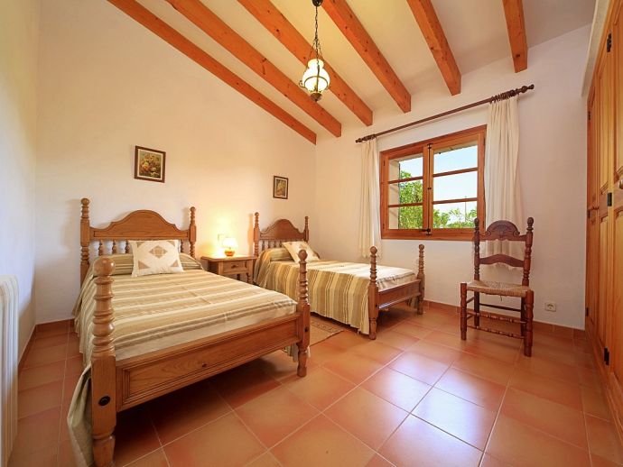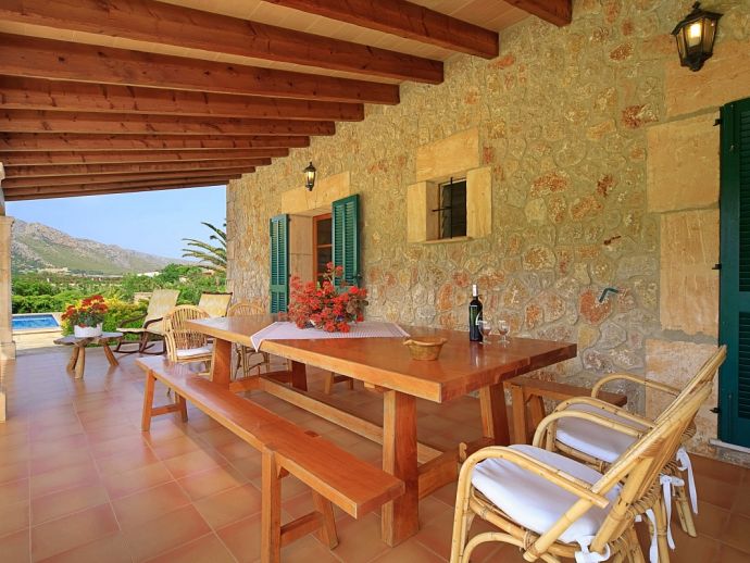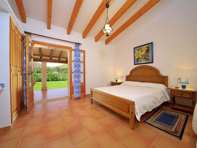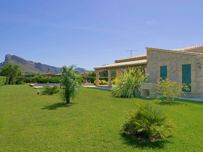 Finca Elena is a fabulous stone-built holiday home offering extensive gardens, a private pool, beautiful views and a perfect location. Situated at the foot of the Boquer mountains yet within walking distance (20 minutes) to bars, shops, restaurants and sandy beach of Port de Pollenca. The property sleeps up to 6 guests in interiors that combine the atmosphere of the traditional Mallorcan finca with all the most modern comforts, it is spacious, airy and is fitted to the highest standard. Set over one floor, it comprises 3 air-conditioned bedrooms that share two superbly fitted bathrooms (one of which boasts a luxurious raised oval bathtub), a lounge/dining room with exposed beams and a large, fully fitted kitchen with all the necessary facilities for a self-catering holiday. From the hallway stairs lead up to a reading area on a mezzanine level. At the rear of the villa, there is a large covered terrace (it can be accessed from both the dining room and the double bedroom) which overlooks the delightful private pool and the surrounding gardens, It is provided with a built-in barbecue perfect for alfresco dining while enjoying the wonderful evening views as the sun goes down behind the mountains. Finca Elena is an ideal choice for families/friends to enjoy a relaxing holiday in an idyllic setting whilst still being within walking distance to the beach and all the amenities of Port de Pollenca!