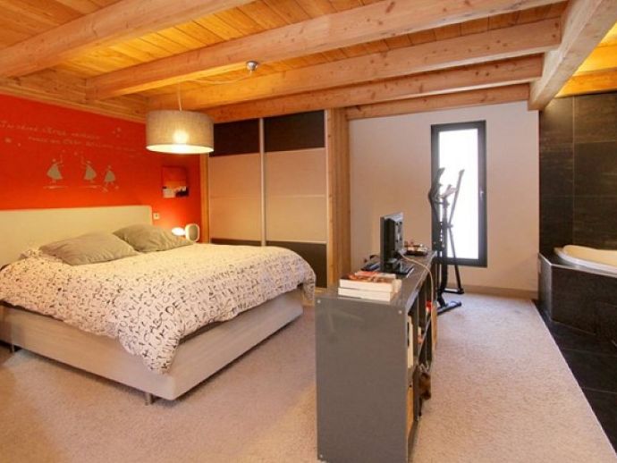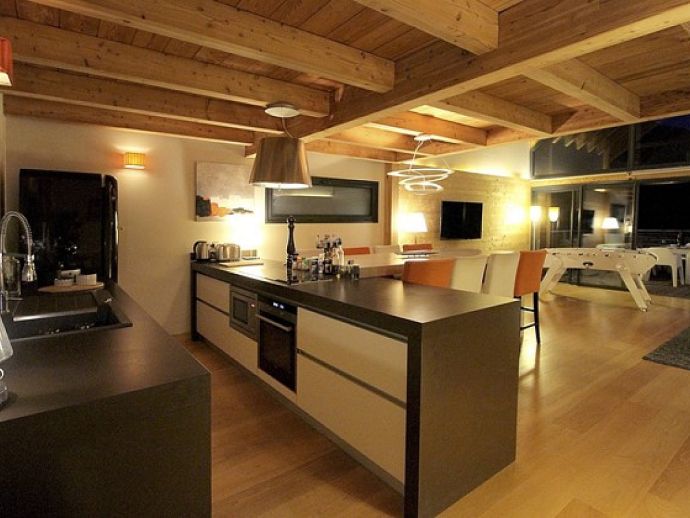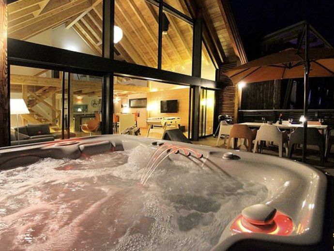 • Large living area, corner sofa, TV • Equipped kitchen: oven, microwave, induction hob, extractor fan, fridge, freezer, coffee machine, raclette machine, toaster • 5 Bedrooms • 3 Bathrooms • 3 Toilets • Utility room with washing machine and tumble dryer • Ski room with boot dryers • Mezzanine with billiards table • Terrace (50m²) with outdoor furniture and hot tub •
