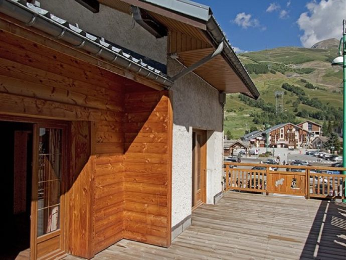 • South Facing Terrace (30 m²) • Balcony • Free Wi-Fi • Parking (1 space) • Close to Ski Lifts: Jandri Express - 100 m, Super Venosc - 500 m, Viking - 600 m, Diable - 700 m • Centre of Resort - 50 m • Free Shuttle Bus Stop - 20 m •