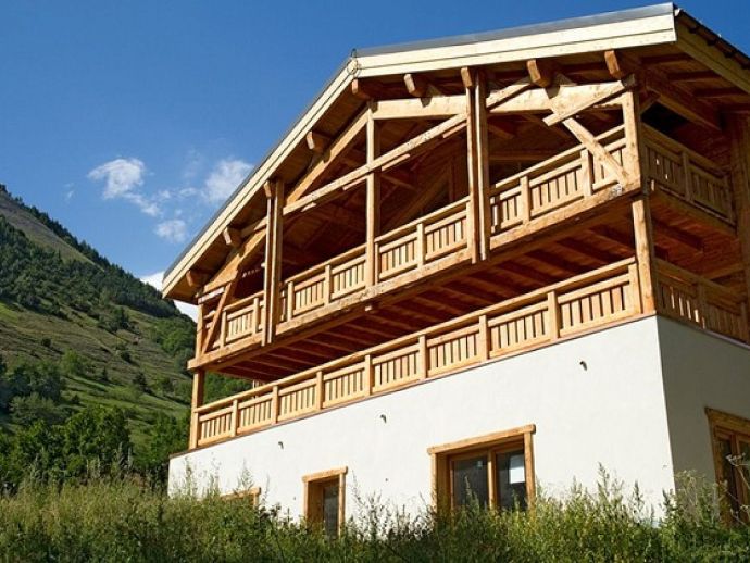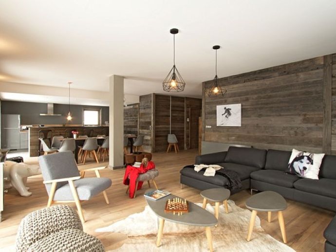 Chalet Nuance de Blanc is a modern chalet with a sauna and a large terrace with hot tub situated in the heart of the Huez village with direct access to the express cable car that connects with the resort of Huez d'Aples above. With a view on the summits of the Oisans and the Ecrins National Park, the surrounding scenery is enchanting and perfect for a holiday in the French Alpes. This vast chalet offers 230 m² of living space with high quality furnishings and fittings and sleeps up to 12 people. It comprises, an entrance with sauna, a sleeping alcove with bunk beds, a large living room with dining area, a fully fitted kitchen with breakfast bar and 5 bedrooms including a master suite. All bedrooms have access to the large terrace with hot tub, a place where you can relax after a day of activities and enjoy the fabulous mountain vistas!