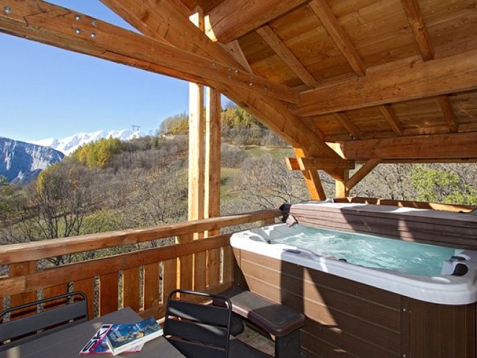 Attractive Chalet with Contemporary Interiors, Large Terrace with Hot Tub & Stunning Mountain Vistas located in Huez Village!
