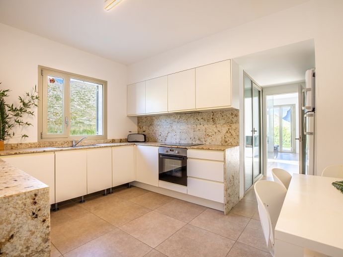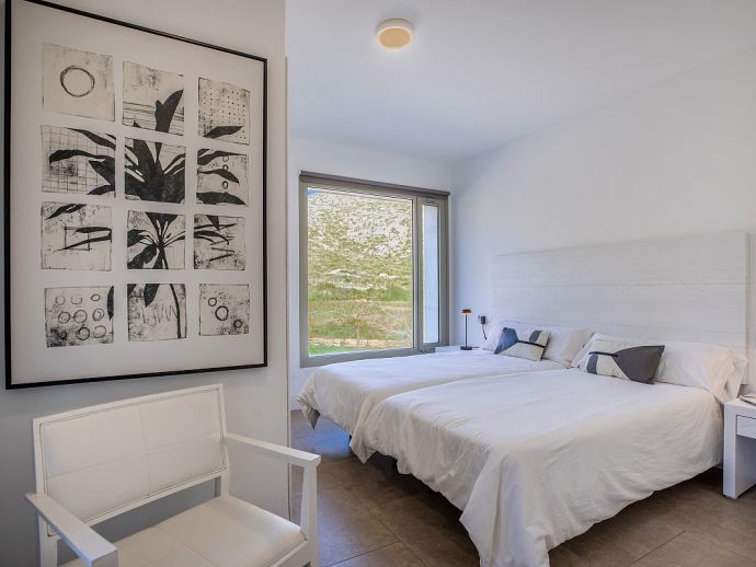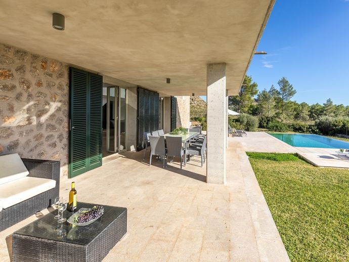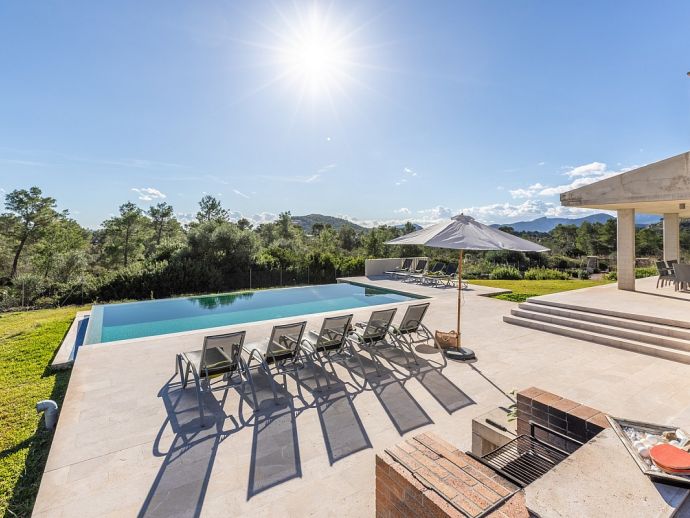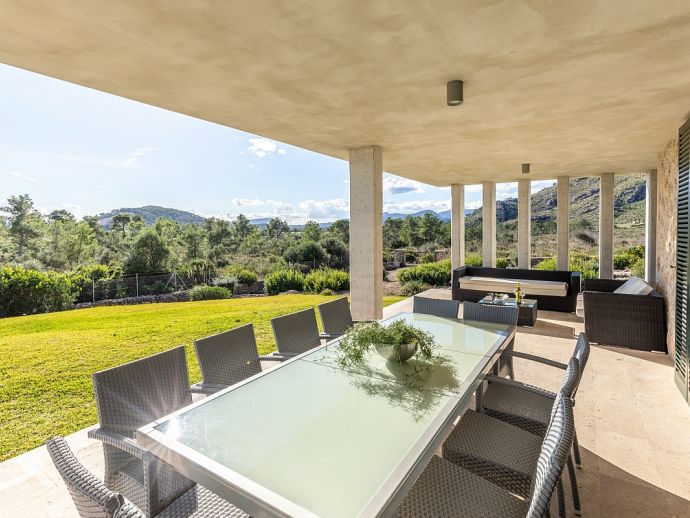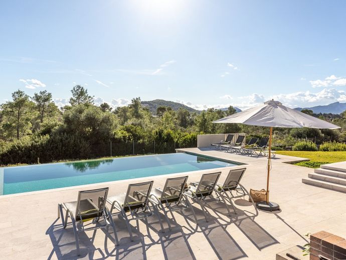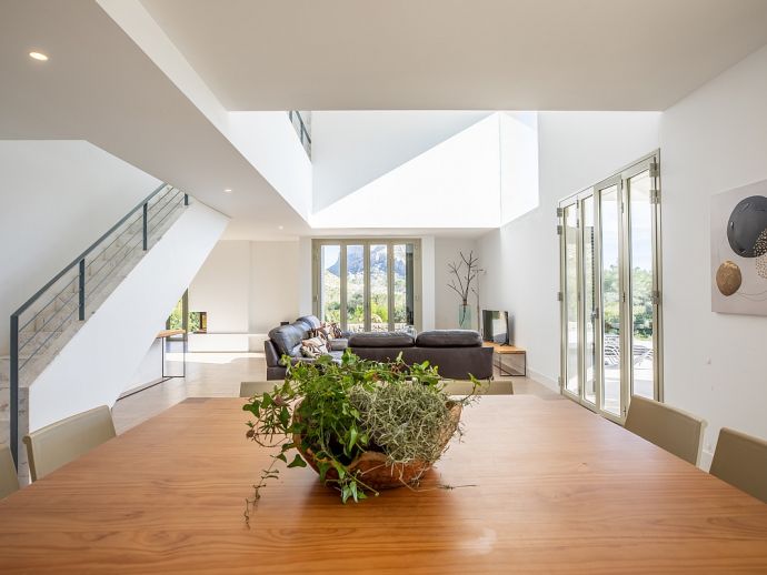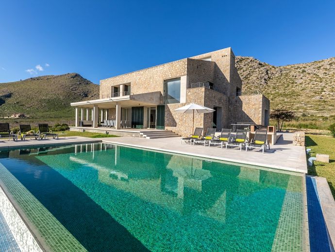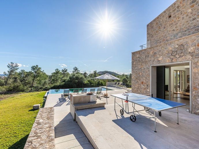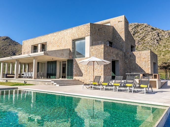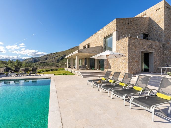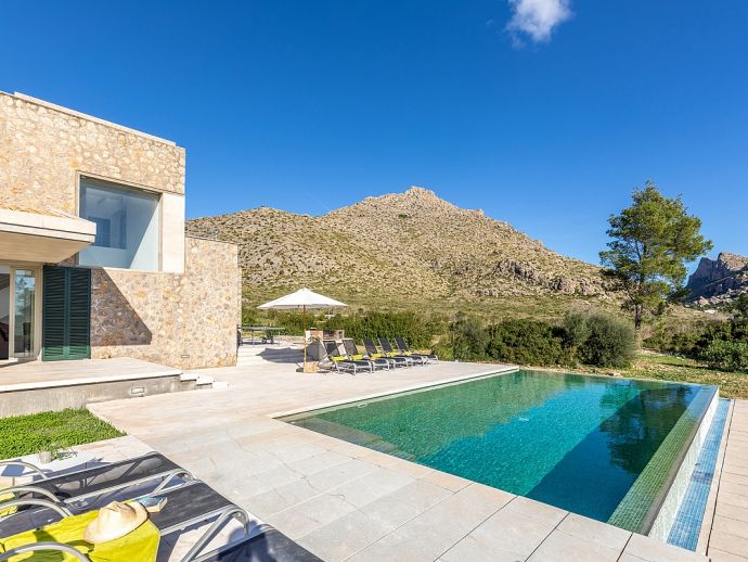 Villa Sa Talia is a contemporary holiday villa with a private pool that's situated in the magnificent area of Siller, affording panoramic mountain views whilst being just 1.5 km (20/30 minutes walk) from the popular resort of Port de Pollenca and its' fabulous beaches, restaurants and shops. The property sleeps up 12 people in modern and minimalist interiors with stylish fittings and furnishings. Inside, comprises 6 air-conditioned bedrooms, 5 bathrooms (4 are en-suite), a fully equipped kitchen and a large open plan living/dining area with glass doors opening out to the terraces and garden. There is a large private pool, equipped with loungers, table tennis, barbecue and outdoor dining area where you can enjoy the wonderful mountain vistas. Villa Sa Talia is ideal for large families/groups of friends seeking a quiet countryside setting yet still being walkable to amenities.