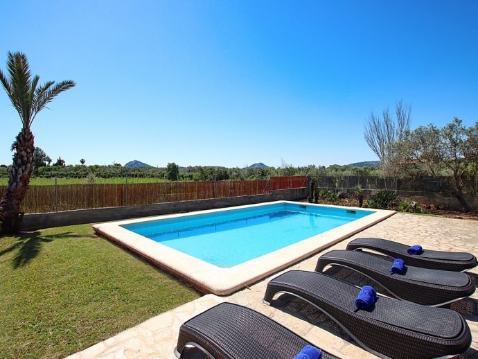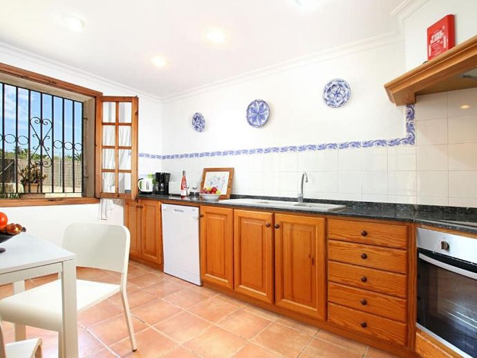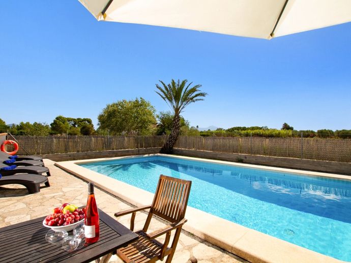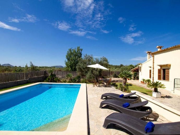 Casa Angelina with a private pool is a delightful villa for 4 guests set in a quiet location in the countryside yet perfectly situated just a 10/15 minute drive to Pollenca old town, Alcudia and the beautiful sandy beaches of Port de Pollenca, Platja d'Alcudia and Platja de Muro. The house is all on one level and has been furnished and decorated in the traditional Majorcan style with whitewashed walls and light-coloured tiled floors giving it a bright and airy feel. There are 2 air conditioned bedrooms, a large living/dining room with feature fireplace and a very well-equipped kitchen with breakfast table. Outside, within the fenced garden is an inviting private pool, sun terrace with loungers, a covered dining terrace and a further covered terrace with built-in barbecue, perfect for meals alfresco. Casa Angelina is a great choice for a romantic couple or a small family seeking a countryside retreat, whilst being within easy reach of ancient towns and beaches!