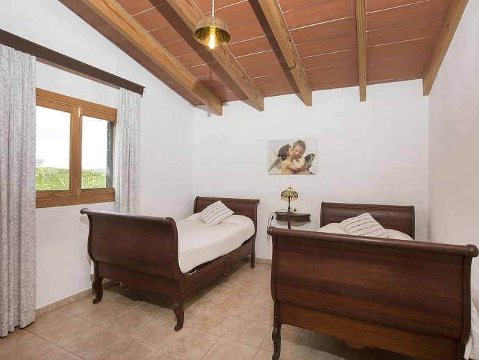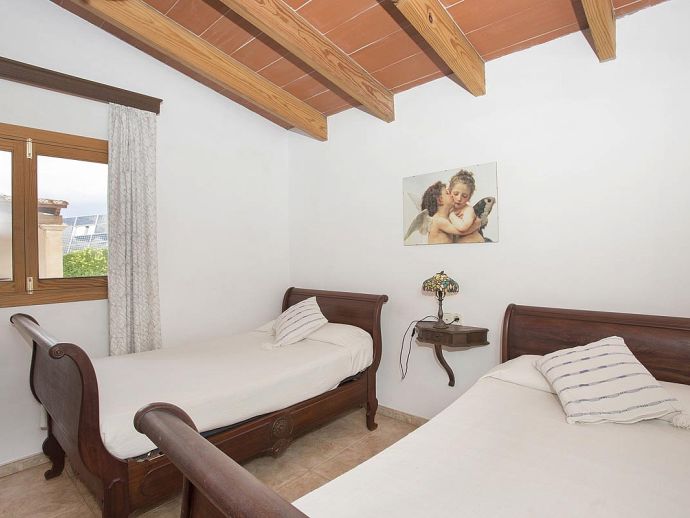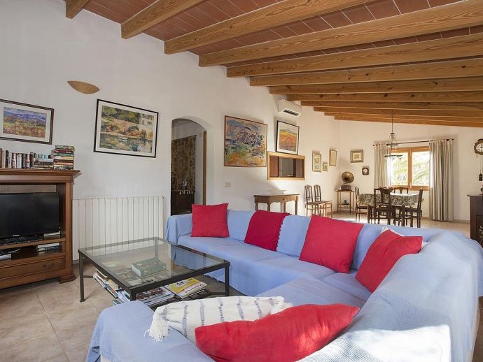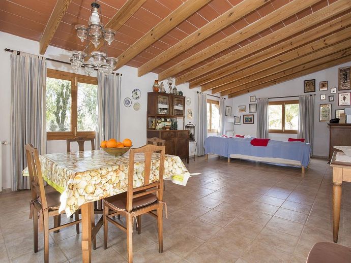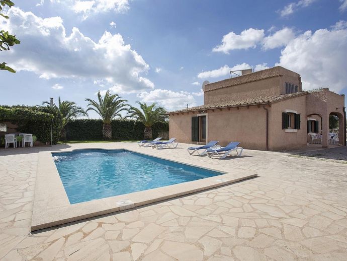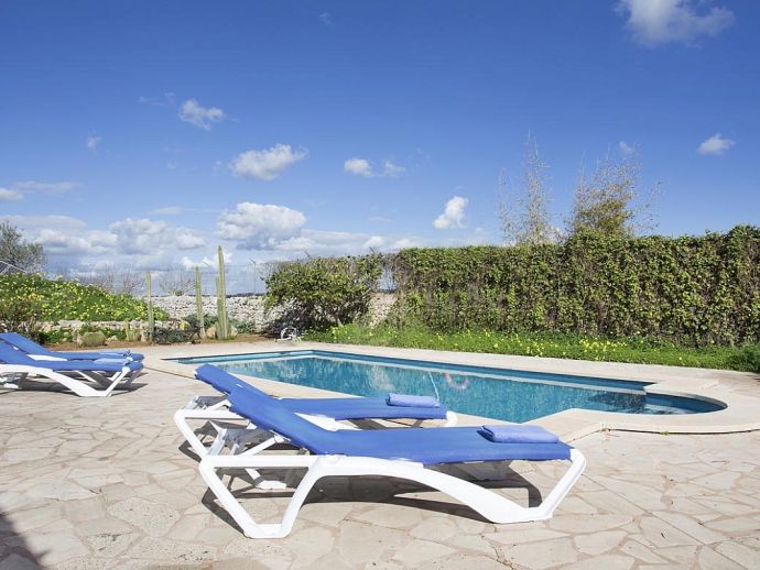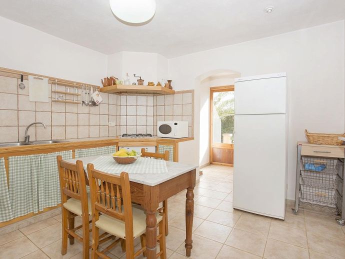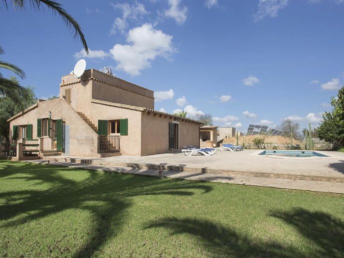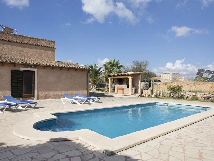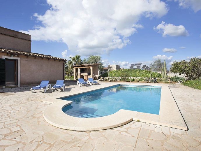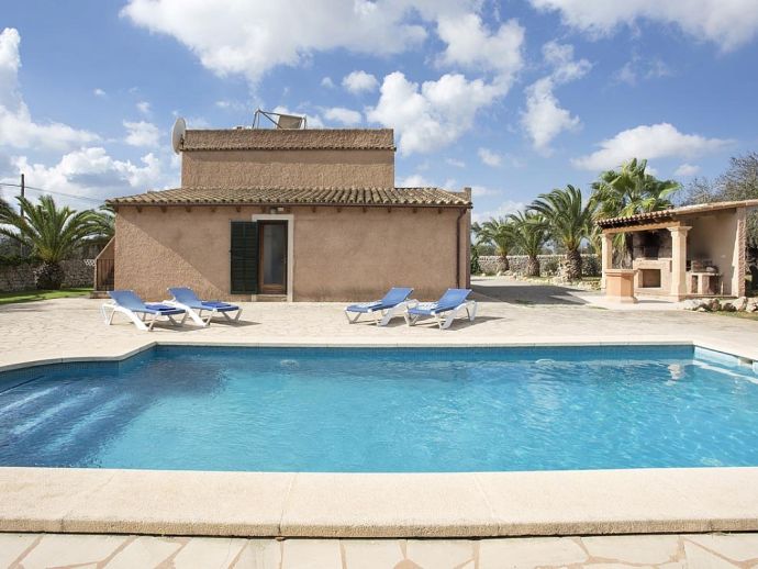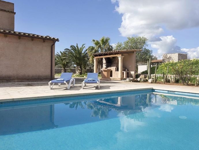 Finca Verena with a private pool is located on the outskirts of the delightful town of Santanyí, just a 15 minute walk to the town where you'll find all the amenities and fabulous restaurants. Situated down a country lane with a gated entrance this holiday home offers a quiet and simple holiday retreat for up to 4 people. The house is fully air conditioned (payable locally) and comprises, 2 bedrooms (1 double/1 twin), 1 full bathroom, a spacious lounge, dining room with beamed ceilings, white walls, ceramic floor tiles, comfortable sofas and a large flat screen satellite TV. Next to the lounge is a small separate fitted kitchen equipped with gas cooker, microwave, dishwasher fridge/freezer, etc. and a utility area with a washing machine. Outside, a large sun terrace surrounds a private pool with crystal clear waters and Roman steps, perfect for cooling off after a busy morning exploring the bustling market in town. For lazy days spent at the house, a covered barbecue is also provided to enjoy meals alfresco. Finca Verena is an ideal choice for a couple or a small family who want to be close to an authentic Mallorcan town and have easy access to the natural coastline of the south and its' fabulous beaches!