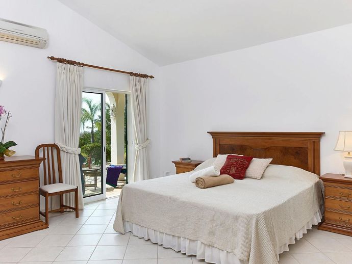 Master Bedroom: 1 x double bed, A/C, en-suite bathroom (bath/shower over, w/c), patio doors to private terrace.