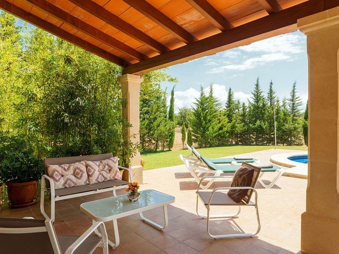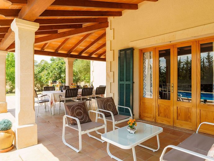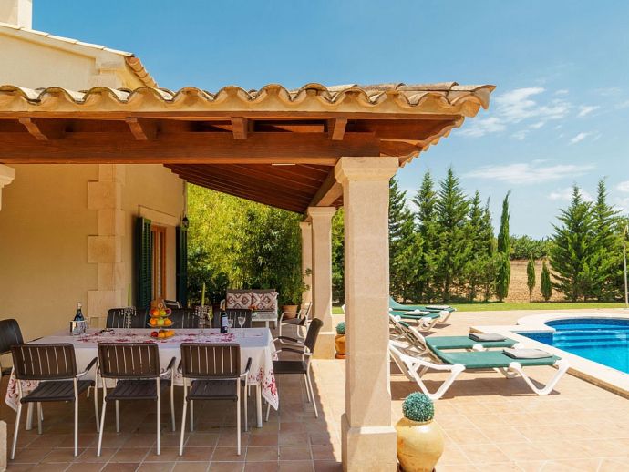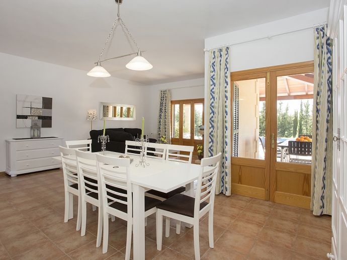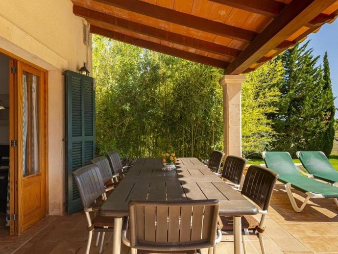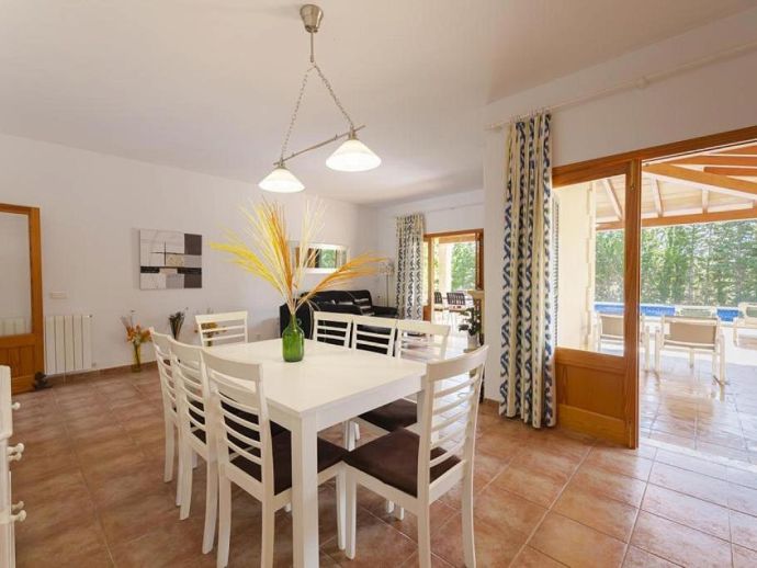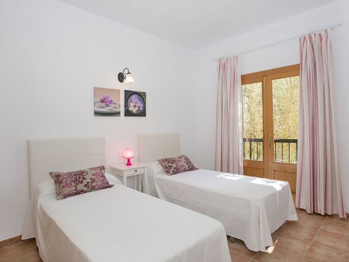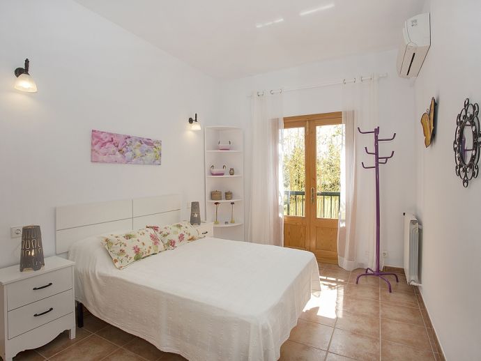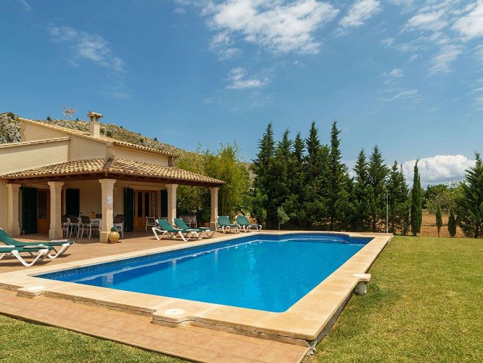 Villa Pedro with a private pool is a lovely, restored stone holiday villa offering beautiful mountain views and a great location. Set in the idyllic countryside between the resorts of Pollenca, Port de Pollenca and Cala San Vicente means you can be in the heart of the old town or relaxing on one of the fantastic beaches within a 10-minute drive. The house sleeps up to 6 guests in bright and spacious interiors distributed over one level. There are 4 air-conditioned bedrooms, 3 of which have patio doors out to the terrace/garden, 3 bathrooms, a fully equipped kitchen with dining table, a utility area with washing machine and a comfortable lounge with satellite TV, DVD player, CD player, Wi-Fi, dining facilities and patio doors to the terrace. A covered terrace provides a shaded area to relax and eat alfresco meals whilst the sunny poolside terrace and ample lawned gardens provide plenty of space for all to enjoy the sunny days. The inviting private pool with Roman steps and a poolside shower measures 10 x 5 meters and there is also a built-in barbecue and covered terrace with table tennis tennis provided. Villa Pedro is ideal for those who enjoy outdoor living in the countryside whilst also having easy access to amenities, restaurants, sandy beaches and attractions and offers a peaceful retreat for relaxing holidays with family/friends.