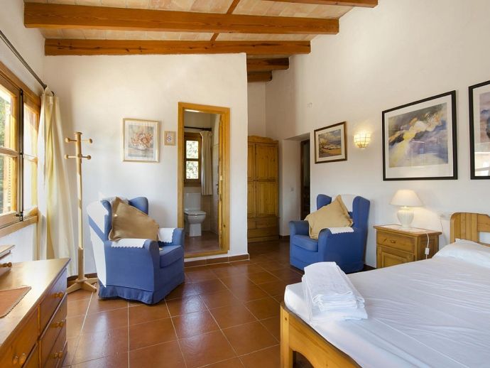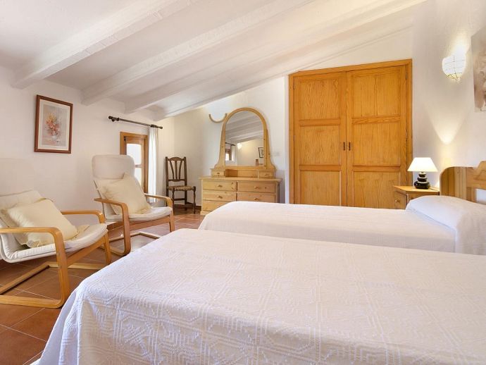 Villa Marisol with a private pool is set in a very pretty area known as the Colonya Valley offering fantastic views of the Puig de Maria and surrounding countryside. This idyllic location is just a short drive (5 minutes) to old town Pollenca and the sandy beaches of the east coast (15/20 mins). The villa sleeps up to 4 guests and comprises, 2 bedrooms, 1 double with en-suite shower room and direct access to the terrace and 1 twin on a mezzanine level accessed via the staircase from the hallway. There is a further family bathroom, a lounge with dining area and a fully equipped kitchen. Outside, you have an inviting private pool with Roman steps, sun loungers, furnished terraces and a stone-built barbecue area, perfect for meals alfresco whilst enjoying the natural beauty that surrounds you. Villa Marisol is perfect for couples or a small family seeking a relaxing holiday in a peaceful retreat with a convenient location close to amenities and great beaches!