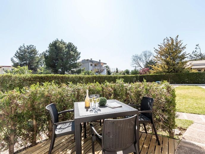 Apartment Limonera is set on a small complex in the quiet residential area of Llenaire, situated on the outskirts of Port de Pollenca and just 100 metres to the long sandy beach in the bay of Pollenca. Nearby you will find some shops and restaurants and a 20 minute stroll along the promenade will take you to the main town of Port de Pollenca. This attractive town is one of the most popular family resorts in the whole of Mallorca and offers great activities, beaches, bars and restaurants. Originally a fishing village the town still features a large marina which usually harbours leisure boats but you can still see some traditional ‘llaüts’ used by the Mallorcans for catching fish. The horseshoe-shaped bay is well protected from strong winds and so the calm, warm water of the Mediterranean sea is ideal for holidays by the beach. The 1 km "Pine Walk" promenade along Passeig Voramar with whitewashed villas and pine trees leaning into the sea is perfect for an early evening walk.