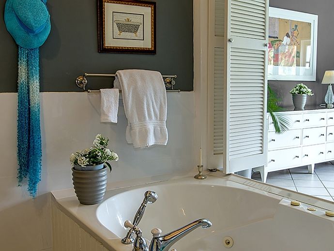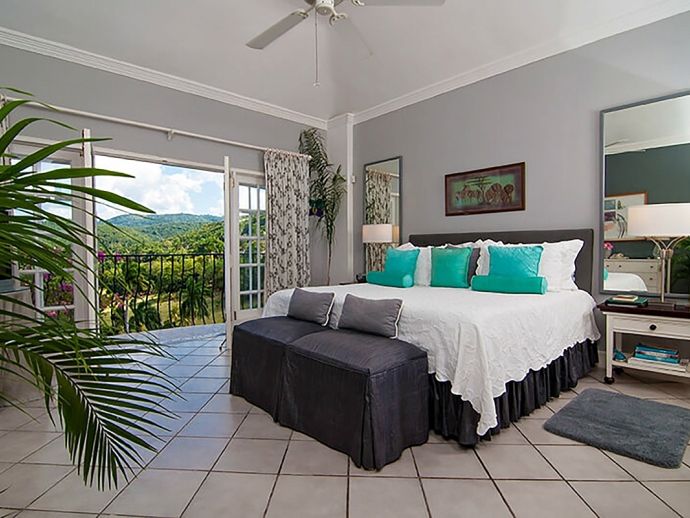 First Floor - Master Bedroom: king-size bed, A/C, ceiling fan, flatscreen TV, en-suite bathroom (Jacuzzi bath tub, separate walk-in shower, w/c, Molton Brown toiletries, hairdryer)