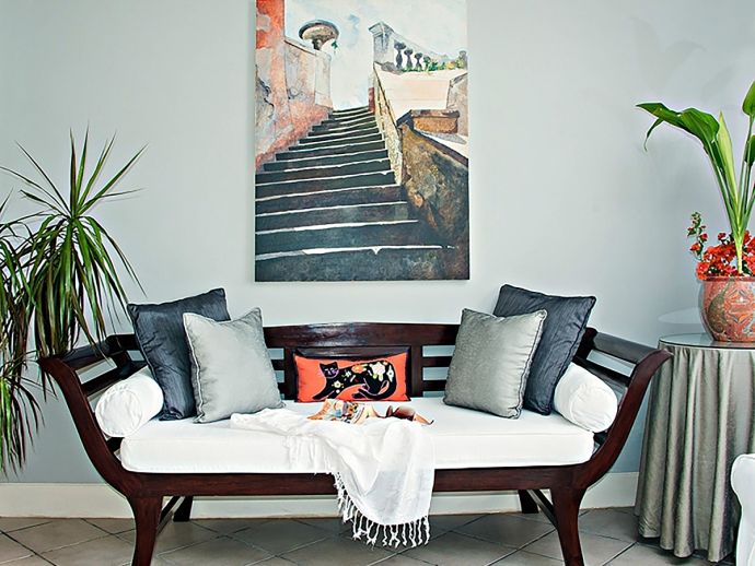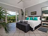 Elegant, refined and superbly situated, Mirador is a hideaway for two offering outstanding ocean and golf course views. Mirador is an extremely smart one-bedroom apartment with a private terrace and balcony as well as a splendid location, just a short stroll from many amenities, including the main communal swimming pool, tennis courts, fitness centre and shops whilst the legendary golf course and beach are couple of minutes by golf cart. Built on two levels, Mirador offers nearly 1000 square feet of living space, the architecture is modern colonial, which is complemented by the crisp, clean and elegant interior design. Beyond the entrance foyer on the top floor is the large master bedroom with a king-size bed and an en-suite bathroom with both Jacuzzi bath tub and a shower. The eastern end of the bedroom opens through glass French doors to a small balcony with a commanding view of Round Hill and the sea beyond. Down a short flight of stairs is the well-equipped kitchen, open space dining area and living room with handsome grey walls, and sitting area with sofas and armchairs upholstered in crisp white cotton. The sofa can convert to a double sofa bed for a third and fourth guest. A washer, dryer, and full bathroom are also on this level. At the eastern end of the living room, glass French doors open to a semi-covered private terrace, a grassy lawn, and another beautiful view.