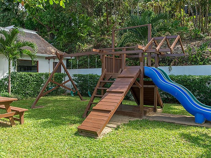 • Hillside Garden with Water Feature • Kitchen Garden • Large Sun Terrace & Balconies • Spectacular Sea & Forest Views • Private Infinity Swimming Pool (deepest point - 5ft 7in) • Poolside Bar • Sun Loungers & Umbrellas • Outdoor Furniture • Private Gym • Children’s Playground • Basketball Court • Pool Table • Ping Pong Table • 5 Golf Carts •