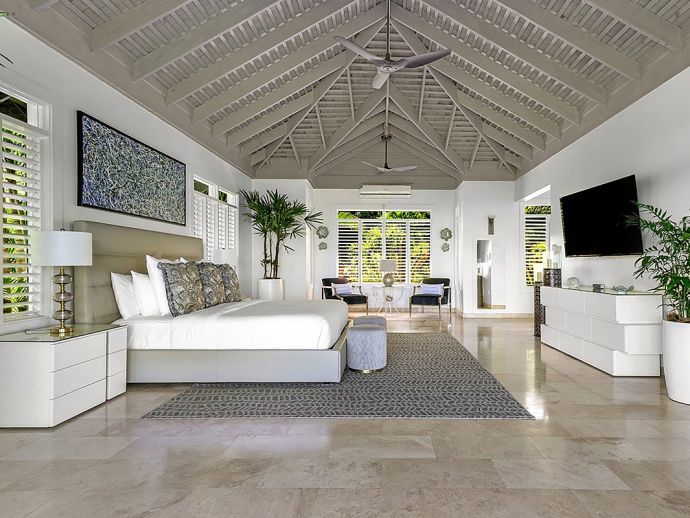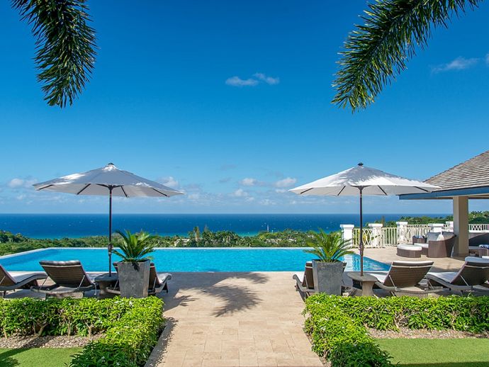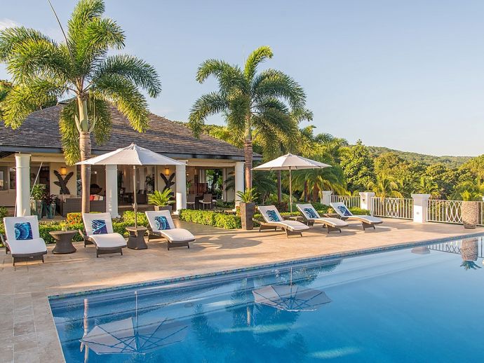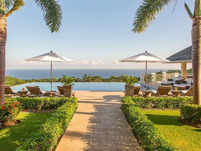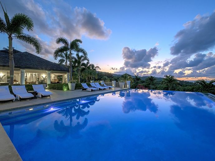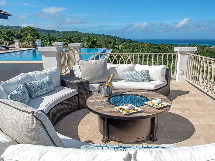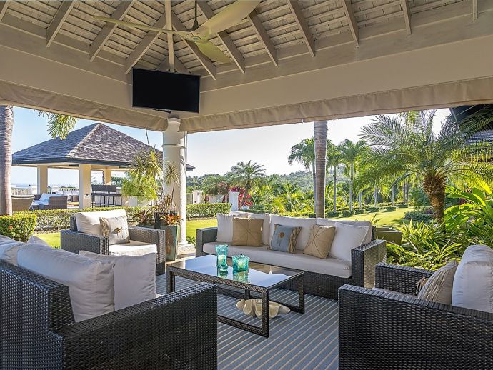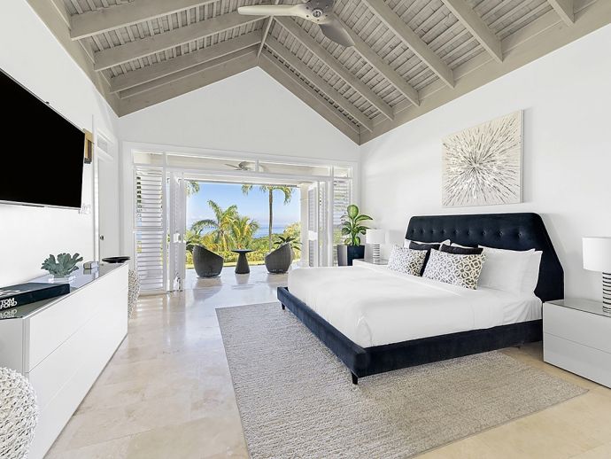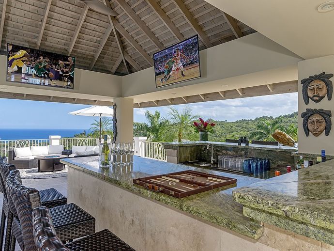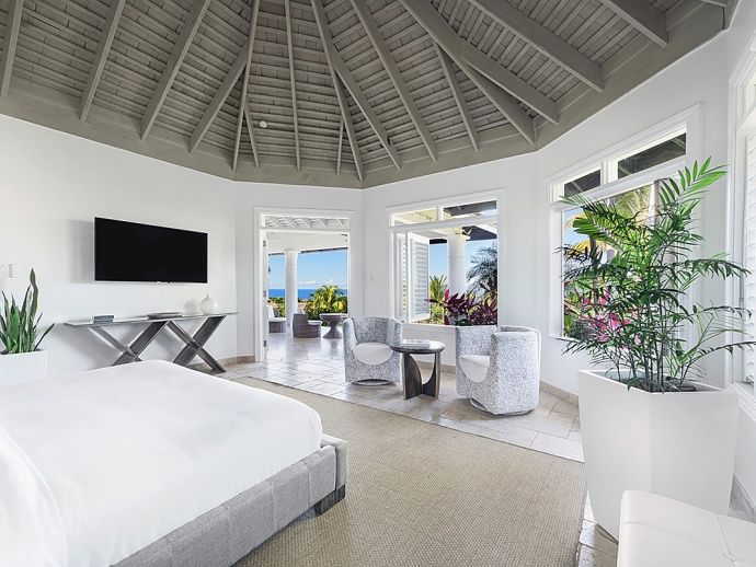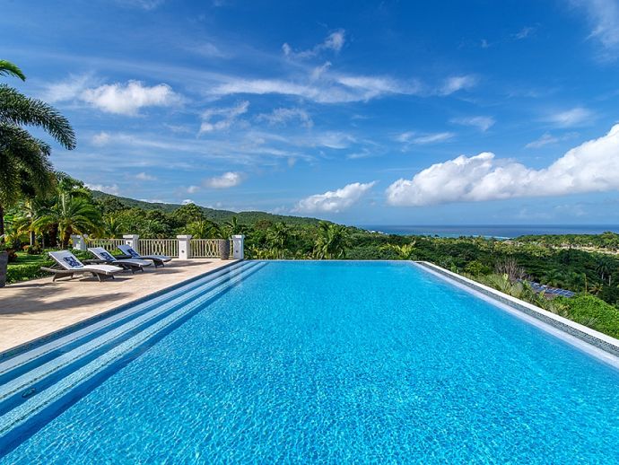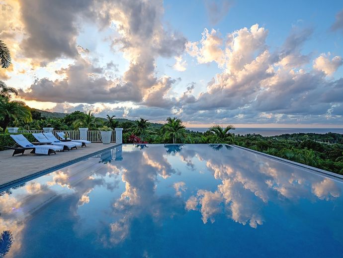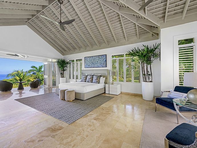 There are villas and then there is Harmony Hill. This breathtakingly stunning villa simply boasts one of the finest locations providing ocean panorama views at every angle that fuse naturally with seven acres of immaculately landscaped gardens, manicured lawns, nature trail and organic garden. Enhanced by a focus on mind and body and its dedication to a world class hospitality experience…..it is for good reason that the “Hill” enjoys an enviable repeat factor from its most discerning guests. Standing 350 feet above sea level atop ocean view drive, surrounded by a seven acre nature oasis and with a cohesive team of twelve staff who are focused on delivering an elite service, Harmony Hill is one of the finest villas throughout the Caribbean. The ocean panorama afforded from every single room and especially the sweeping pool terrace is absolutely breath-taking and many are those who spend languid hours watching the colours shift with the play of light. The meticulous design and level of finish which melds Jamaican-inspired architecture with a contemporary floor plan, magically brings the outside in together with amenities and technology that embody twenty-first century luxury living. The open-concept main pavilion with its soaring ceilings draws the eyes to the stunning infinity pool that lies above the horizon of the ocean beyond. A sitting room with wet bar flows into a formal dining room that seats 16 and a media room with 65 inch surround sound television is a cosy haven for those wishing to catch up with their favourite programmes. The gorgeous covered outer veranda offers two seating areas – one with television – and a dining area which given the amazing view of the sea is hugely popular. To the right of the pool is the “epicenter” of human interaction….a covered bar with television and adjacent lounge area and modern fire pit. From here the panoramic views extend way out to sea and southwards into the forested valley and it is for good reason that it is often the favourite guest gathering spot. With a dedication to wellness, the immaculate custom stainless steel commercial kitchen is the most modern and comprehensibly equipped at Tryall, bringing a discerning farm to table experience befitting the culinary talent of Chef Orane Wright. And there is of course an ocean facing fully equipped private gym, boasting the finest quality equipment. The seven fully air-conditioned bedrooms, allow for various accommodation options, all enjoy spectacular ocean views and all but one opens to a private patio. Four bedrooms are within the main house, two with a private sitting room are in the elevated guest cottage and one is privately tucked away adjacent to the pool for those who like a hideaway. All have walk-in closets and travertine or marble tile en-suite bathrooms. The rainfall, zero depth walk-in showers are magnificent and as you might expect, there are Bose Blue Tooth speakers in each bedroom. Surround sound audio and Wi-Fi is available throughout Harmony Hill, all Tv's are SMART and there is an entertainment library with CD, DVD, PS5, ping pong table and multiple yard games. Throughout the villa you will be stimulated by a striking and meticulously curated art collection. Each year, the owners make subtle design and landscaping changes so that those who return are always delighted – and indeed look forward – to seeing what is fresh and new.