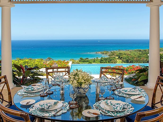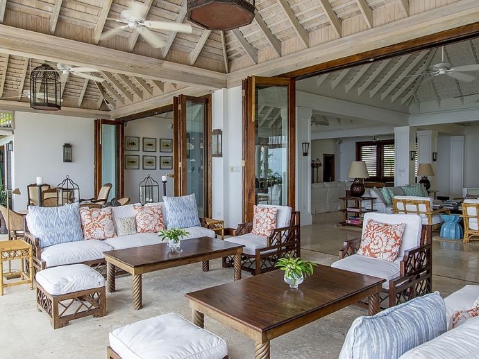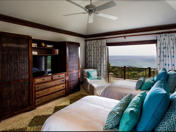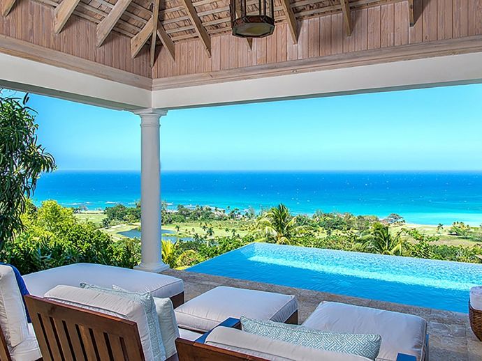 Breath-taking panoramas of the rolling green fairways and the brilliant blue seas are captured from every area of the impeccably designed and capacious living spaces. There are numerous options for family fun and entertainment including a games area with pool table, a state of the art media and entertainment centre with 70” HD flat screen. A recently installed putting green offers guests an opportunity to work on their short game without leaving the comfort of the villa. Up to 14 guests can dine in either the beautiful indoor dining room or outdoors on the breezy terrace. Either way, your meals will be wonderful experiences set against a backdrop of spectacular Caribbean sunsets, and heightened by the culinary talent of your private Chef.