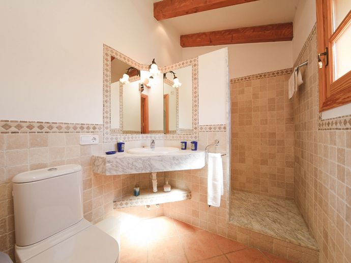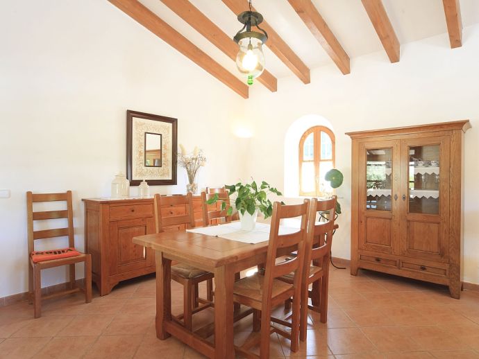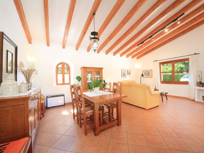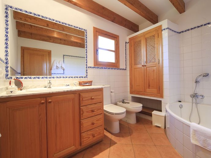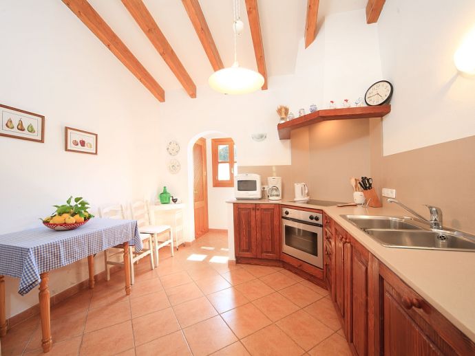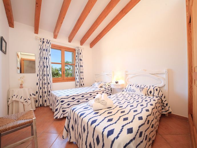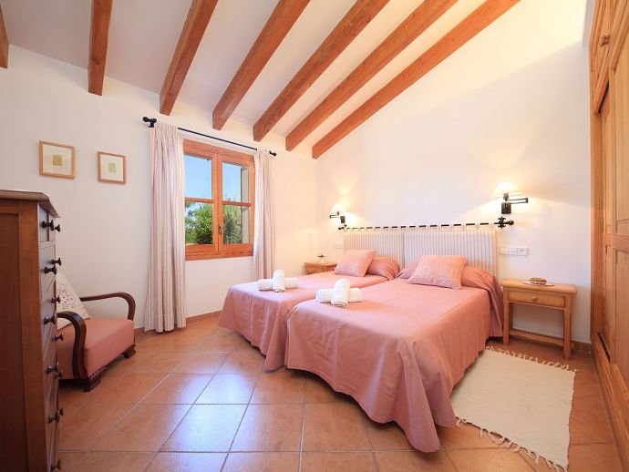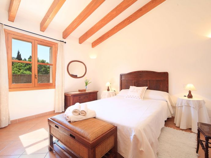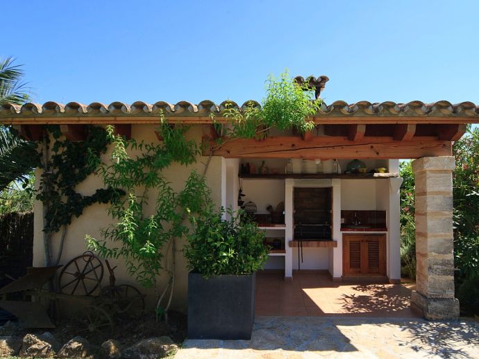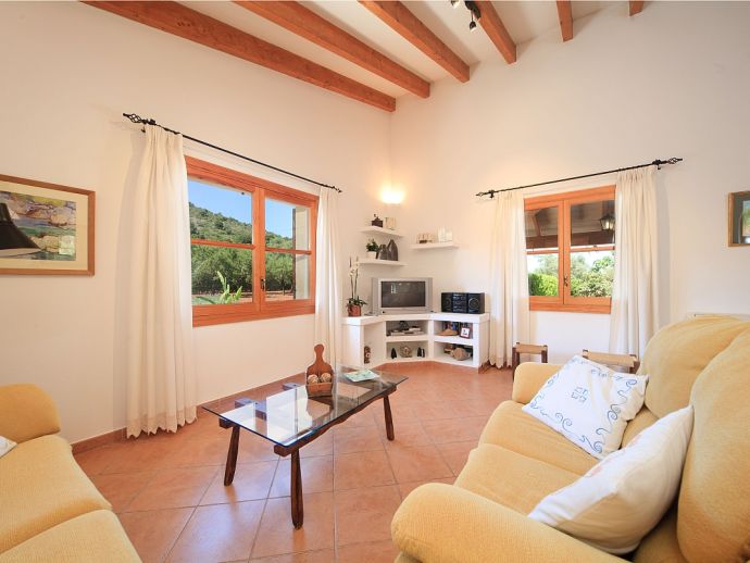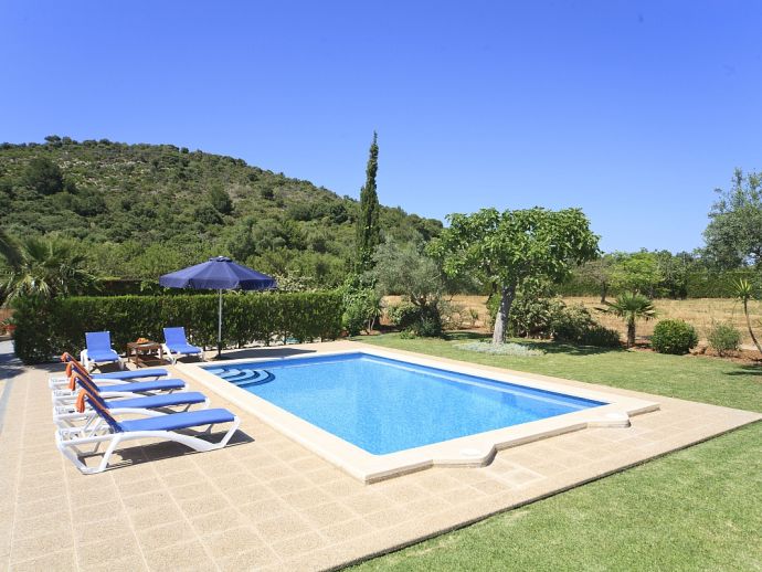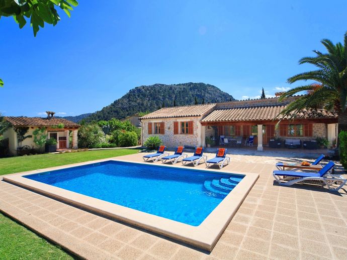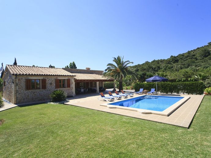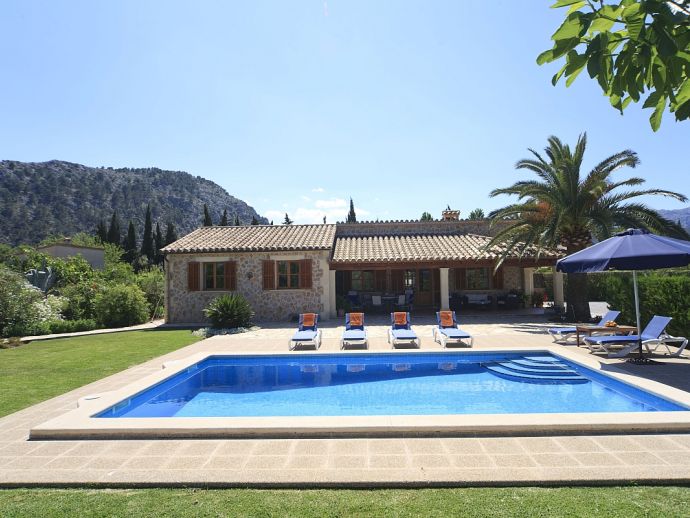 Villa Brianna is an outstanding pretty stone property with a private pool that offers peace, privacy and an excellent location. Set in the beautiful countryside with lovely rural views and just 5 minutes drive from the ancient town of Pollenca and 15 minutes drive from the long sandy beach of Port de Pollenca. Distributed over one level, the villa accommodates 6 guests in spacious interiors and comprises: 3 air conditioned (on a timer) bedrooms, two with twin beds that share a family bathroom and one double with en-suite shower room. A fully equipped kitchen with breakfast area and a comfortably furnished lounge/dining room with TV (News and International channels) and DVD player. Doors lead out to an attractive covered terrace, that provides plenty of shade and a perfect spot for alfresco dining, there is also a separate barbecue kitchen for those who enjoy grilled meals and here you will also find a laundry room with washing machine. Colourful lawn gardens surround the property and set amongst generous sun terraces is an inviting private swimming pool with a shallow end for children. Villa Brianna is a great choice for families seeking a relaxing holiday retreat with easy access to amenities, sandy beaches and activities.