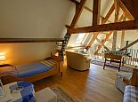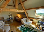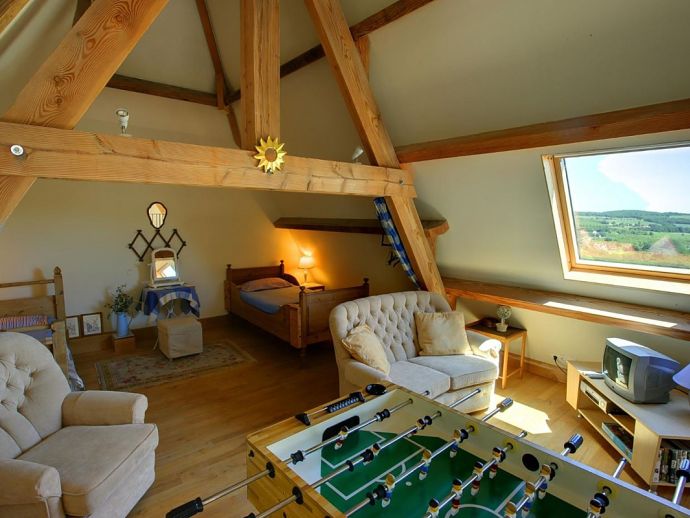Mezzanine Level: Spacious mezzanine room with twin beds and seating area (DVD, table football).