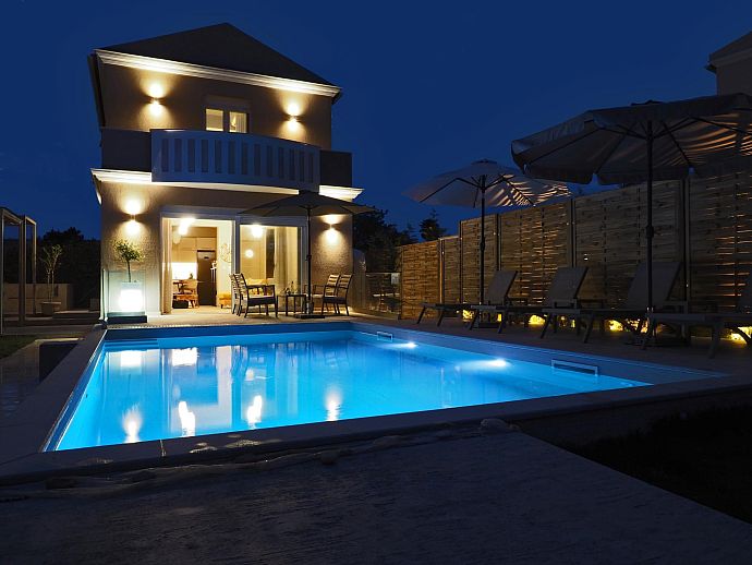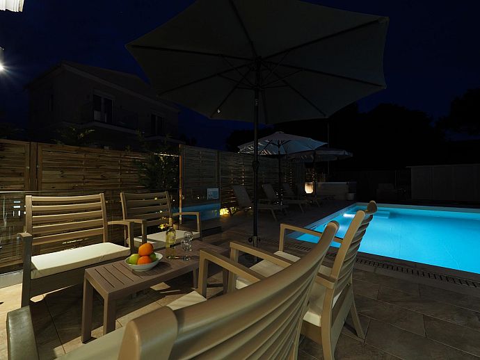 Private swimming pool with corner Roman steps (7m x 4m).