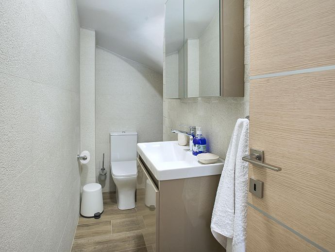 First Floor: Double bedroom (A/C) with balcony. Twin bedroom (A/C). Shower room. Washing machine.