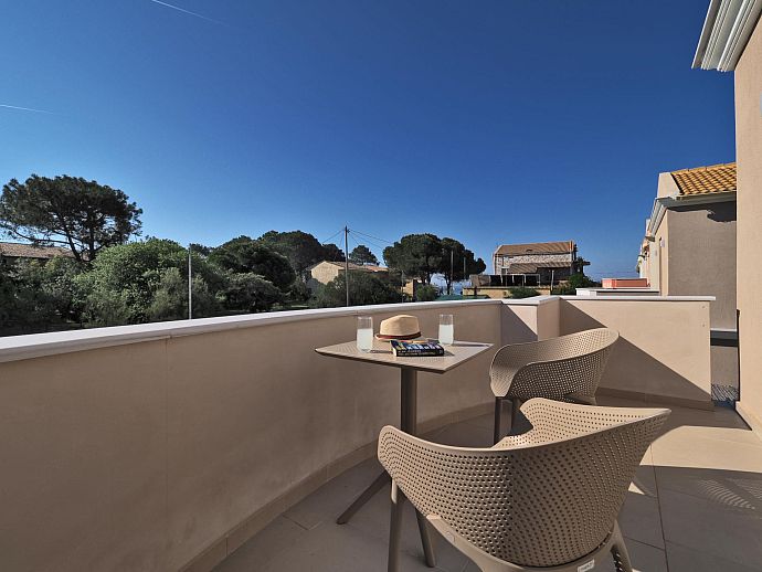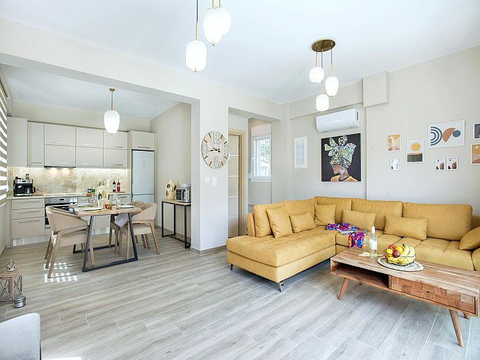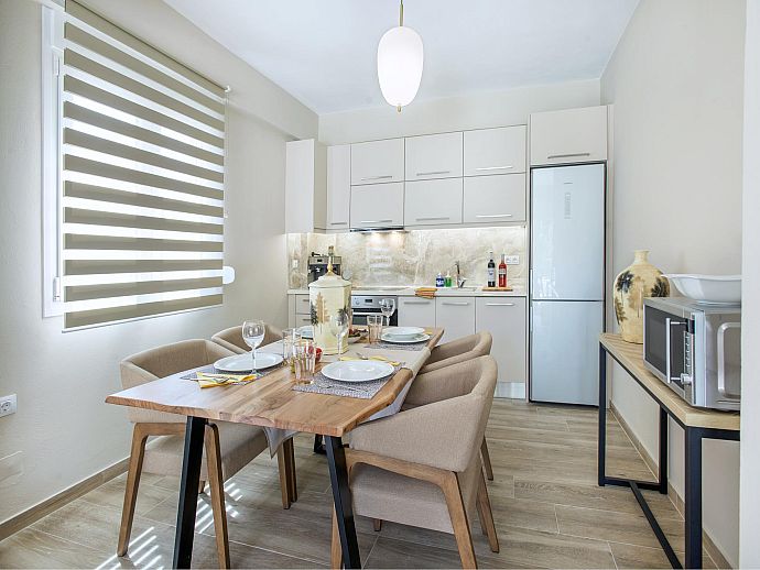 Having such a gorgeous beach as well as the excellent amenities of lively Saint George immediately to hand makes this location convenience itself – so much so that many will consider hiring a car is completely unnecessary. Minimarkets, coffee shops, bars and tavernas (the nearest only 70m away) line the coastal lane that runs through the centre of town and are all just a short stroll from your front door.