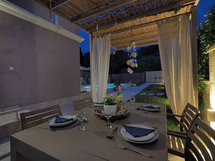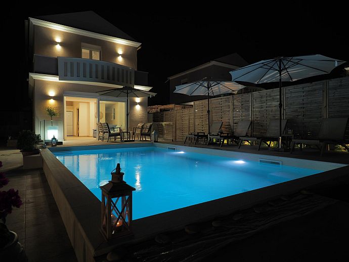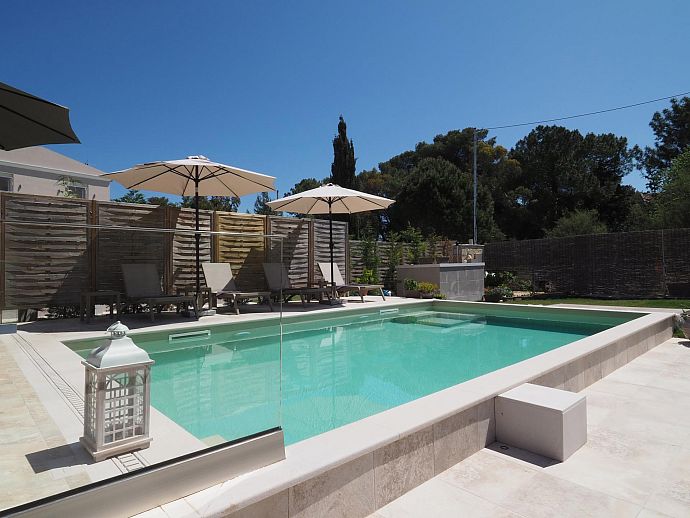 Private swimming pool with corner Roman steps (7m x 4m).