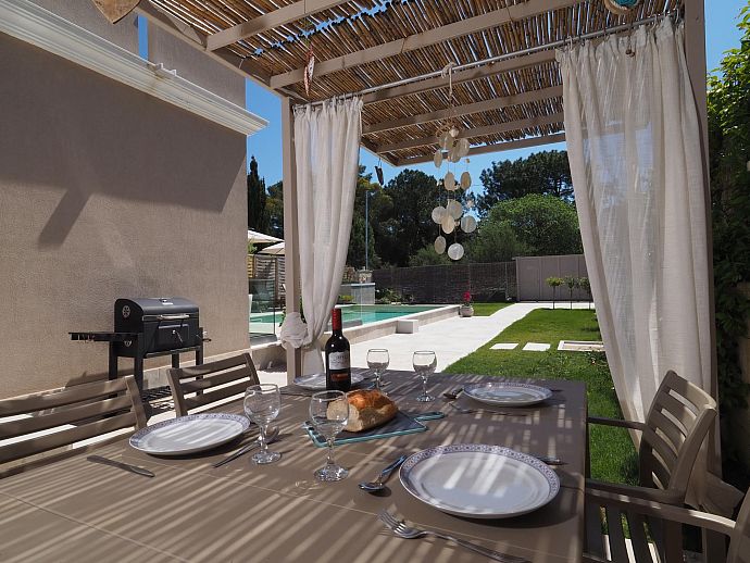 Outside: Sun terrace. Shower. Barbecue. Private parking.