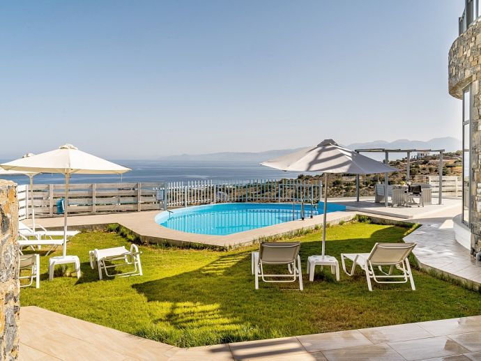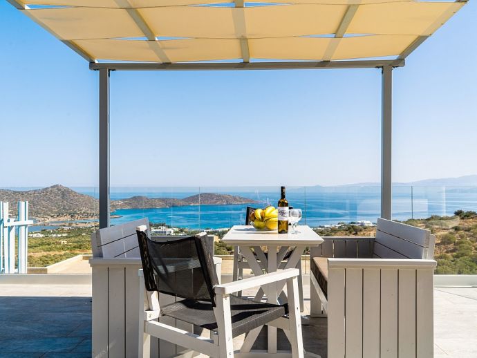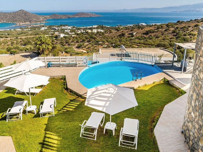 Stylish Sea View Villa, A/C, Private Pool, Panoramic Vistas - Just 4 mins drive from Elounda!
