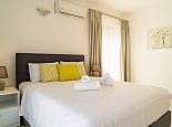 Bedroom: double bed, A/C, en-suite bathroom (shower, w/c), doors to balcony