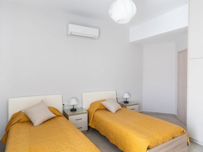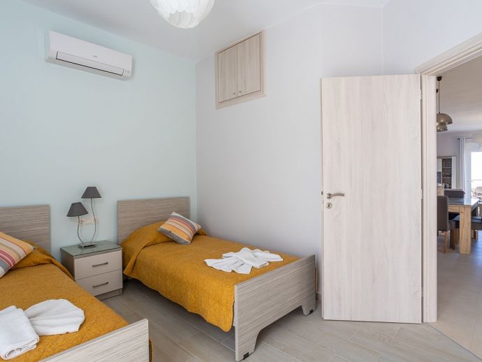 Bedroom: 2 single beds, A/C, doors to balcony
