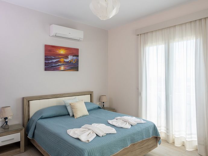 Bedroom: double bed, A/C, doors to balcony