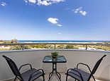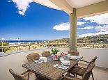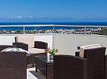 Enclosed terrace garden with mountain and distant sea views.
