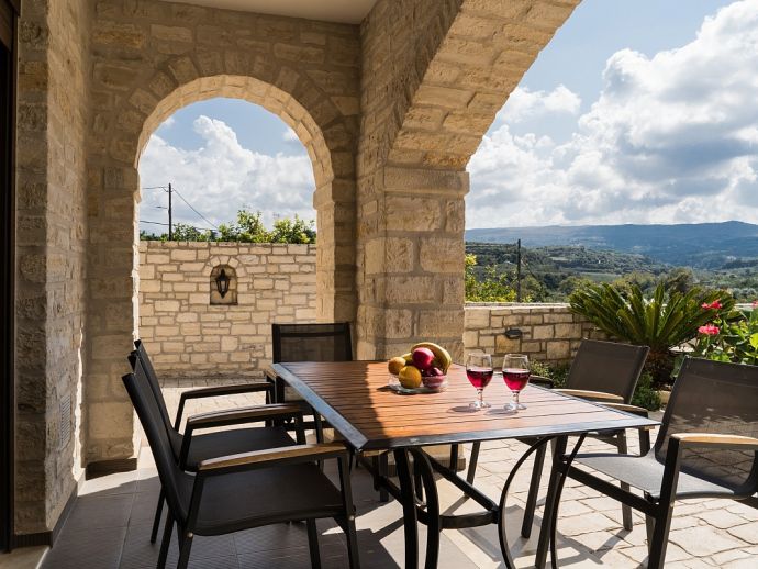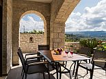 Enclosed garden with picturesque views over olive groves.