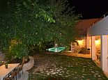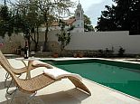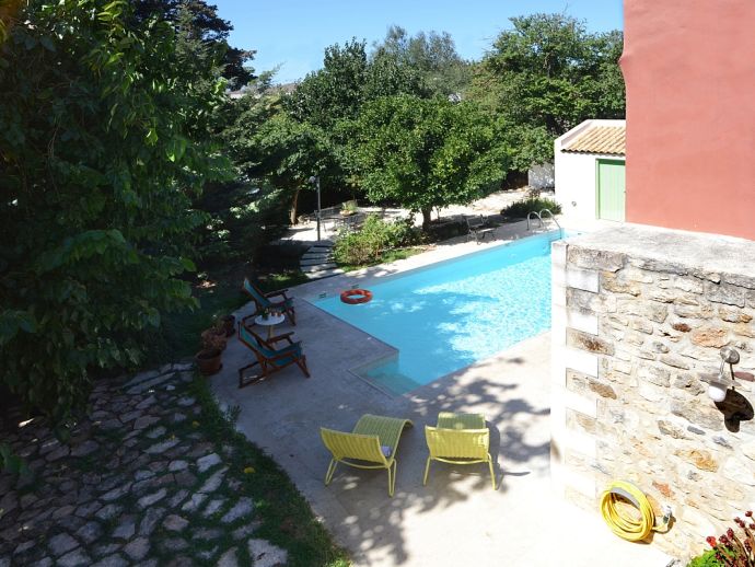 Private swimming pool (6 x 4 meters - depth 0.65 to 1.55 m) with steps and ladder entry.